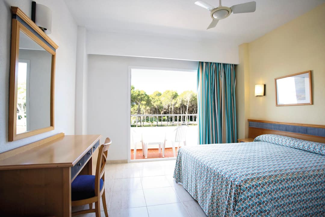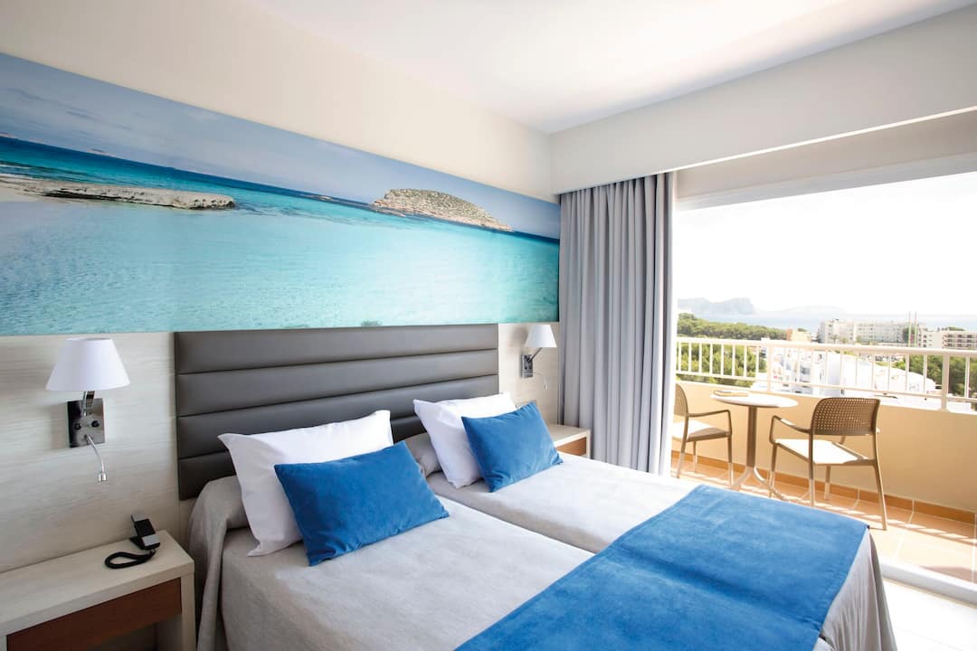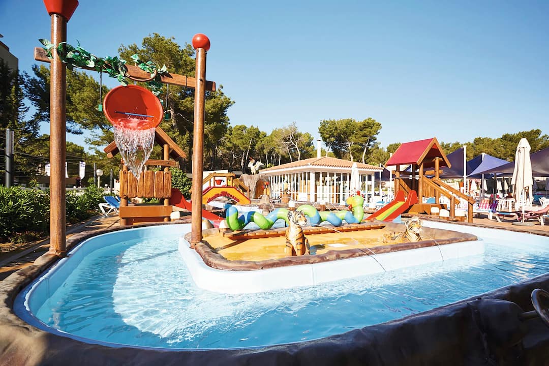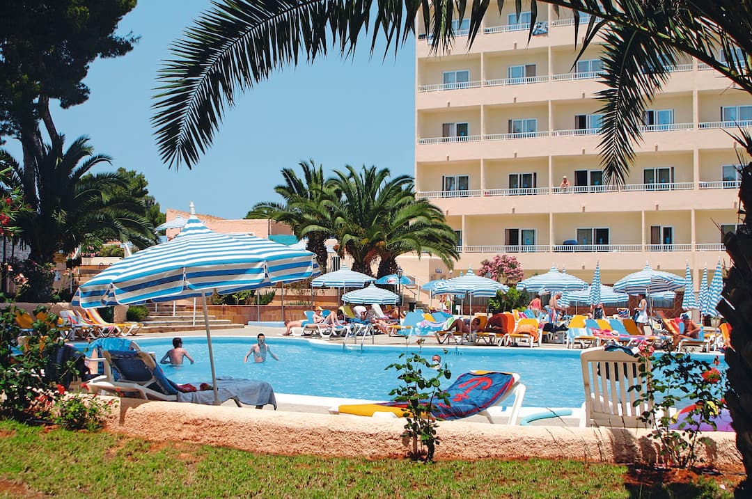 The Invisa Hotel Ereso is just a two-minute walk to Es Cana beach and boasts two outdoor pools as well as a separate pool for kids. A sun terrace with parasols and loungers is perfect for basking in the sun, while the pool bar is on-hand to keep your drink topped up. The main restaurant puts on large buffets with a range of tasty dishes and weekly theme nights to mix things up. Daytime activities include a multi-sports pitch, plus rifle shooting and volleyball. There are even introductory scuba diving lessons on offer. Evening entertainment takes place under the stars on an open-air stage, and includes dance and aerobic acts. There’s also a kids’ disco and Sky Sports in the bar, so you can keep track of the scores.