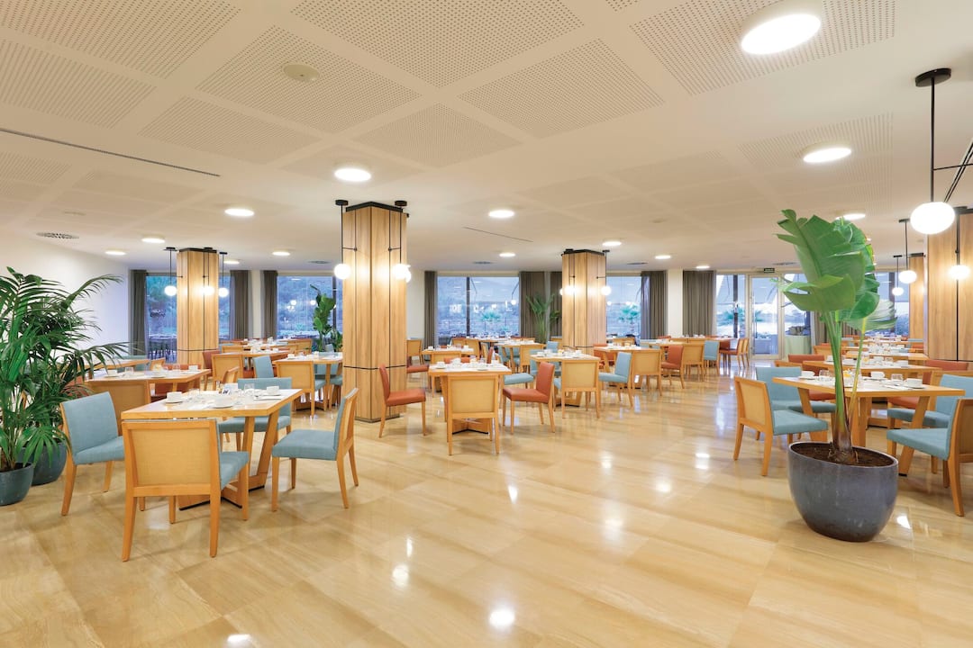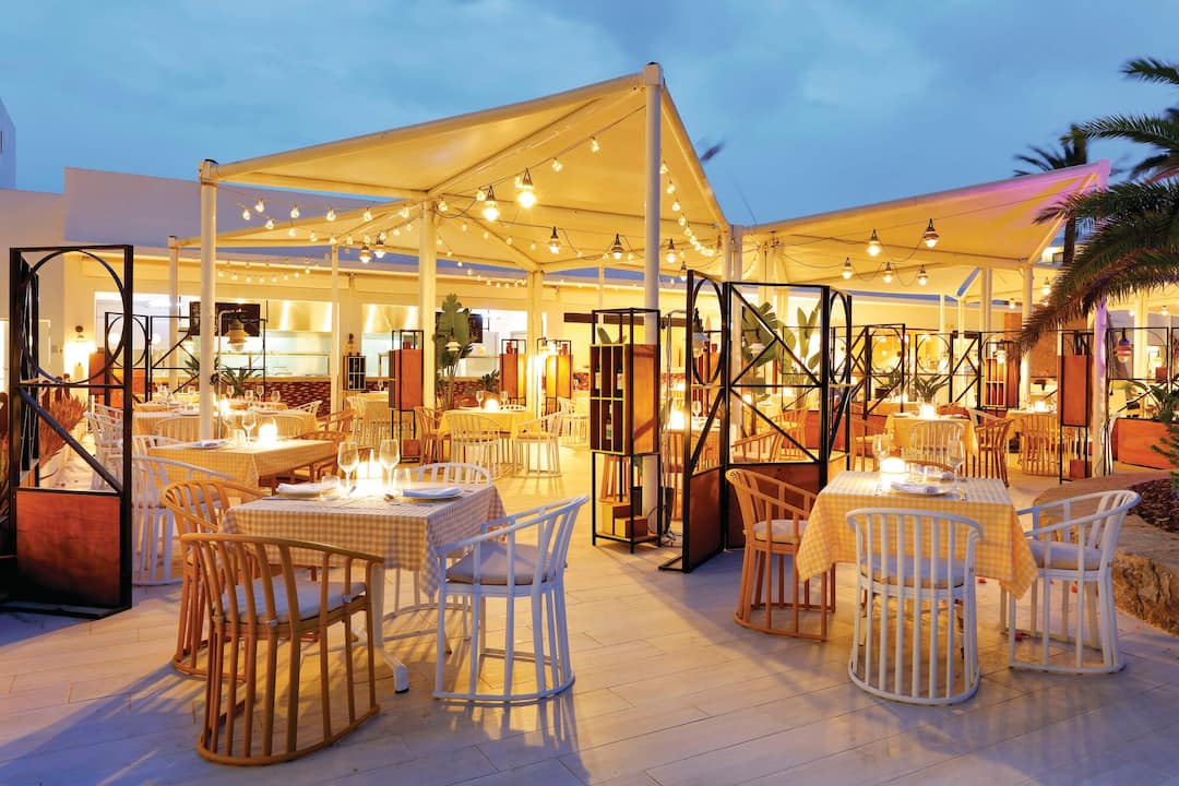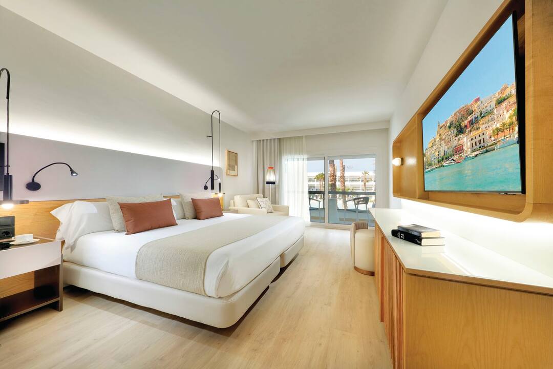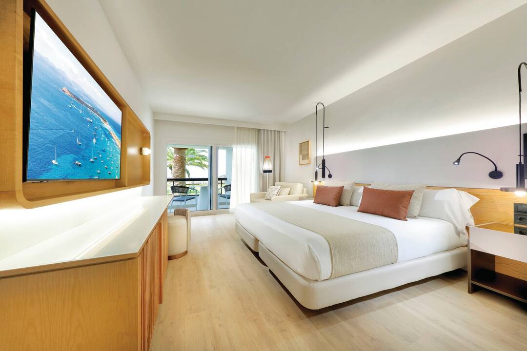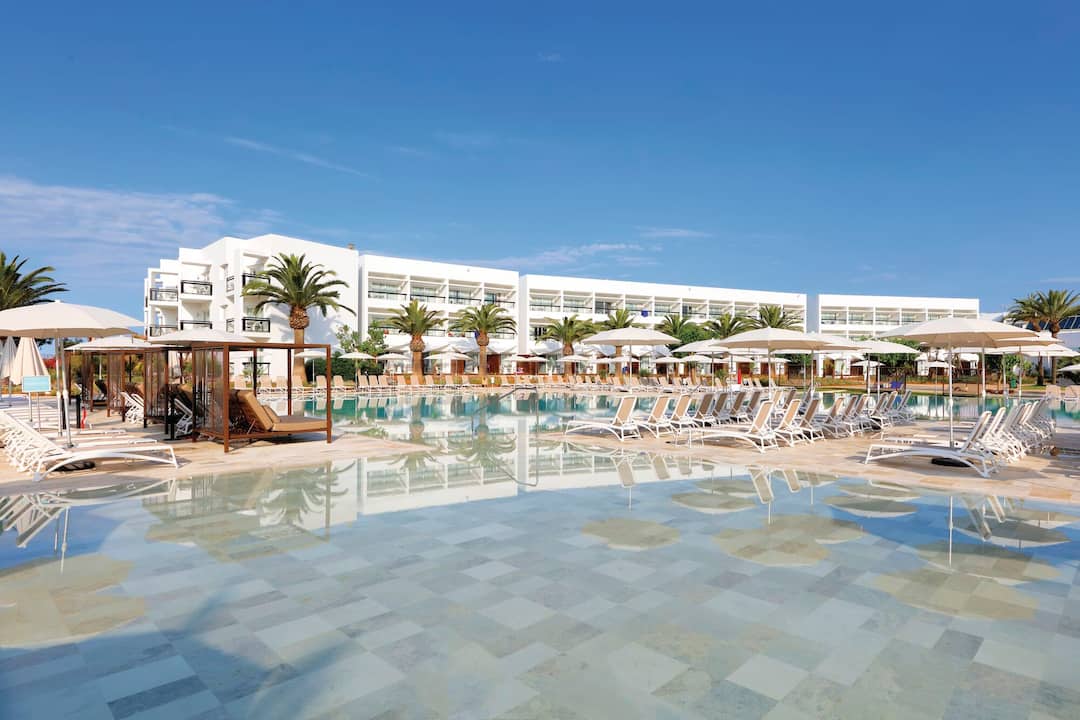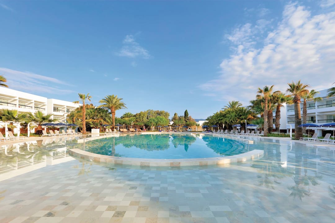 Right by the beach, the Grand Palladium Palace Ibiza Resort and Spa is a stunning hotel with superb facilities. Two impressive pools lined with sun loungers take centre stage amid soaring palms and manicured lawns. One is geared up to music and activities while the other is perfect for relaxing under the sun. Each main pool features a kids’ pool, too. The hotel’s main buffet restaurant serves tasty dishes and comes with an al fresco area for dining under the sun or stars. Five additional eateries are also on-site offering plenty of culinary options. Rooms are modern, comfortable and spacious with luxuries such as bathrobes and slippers as standard. The hotel is well-located at just 1km from the resort centre and 6km to Ibiza Town.