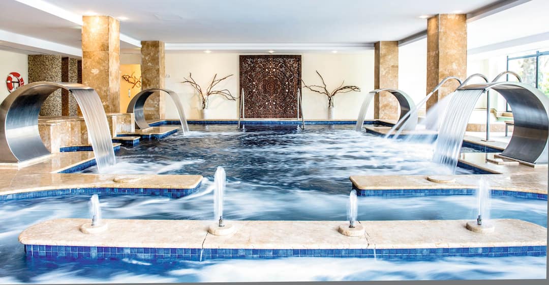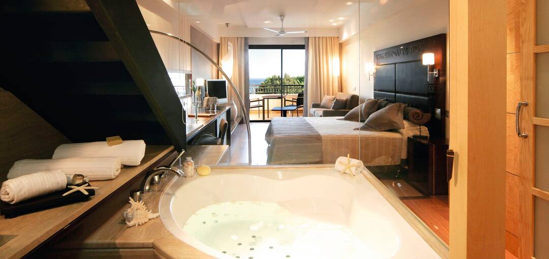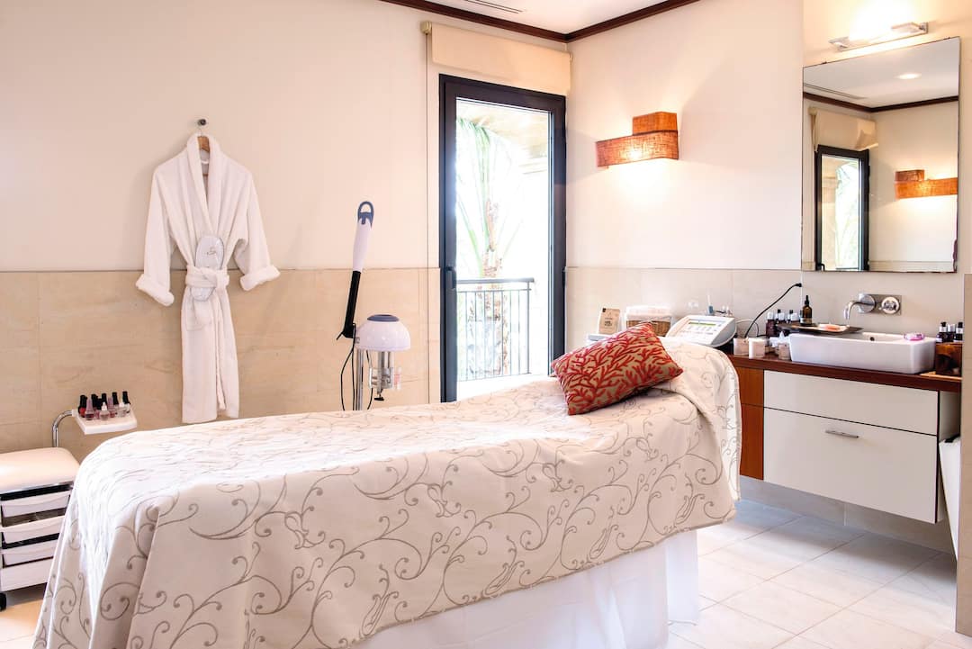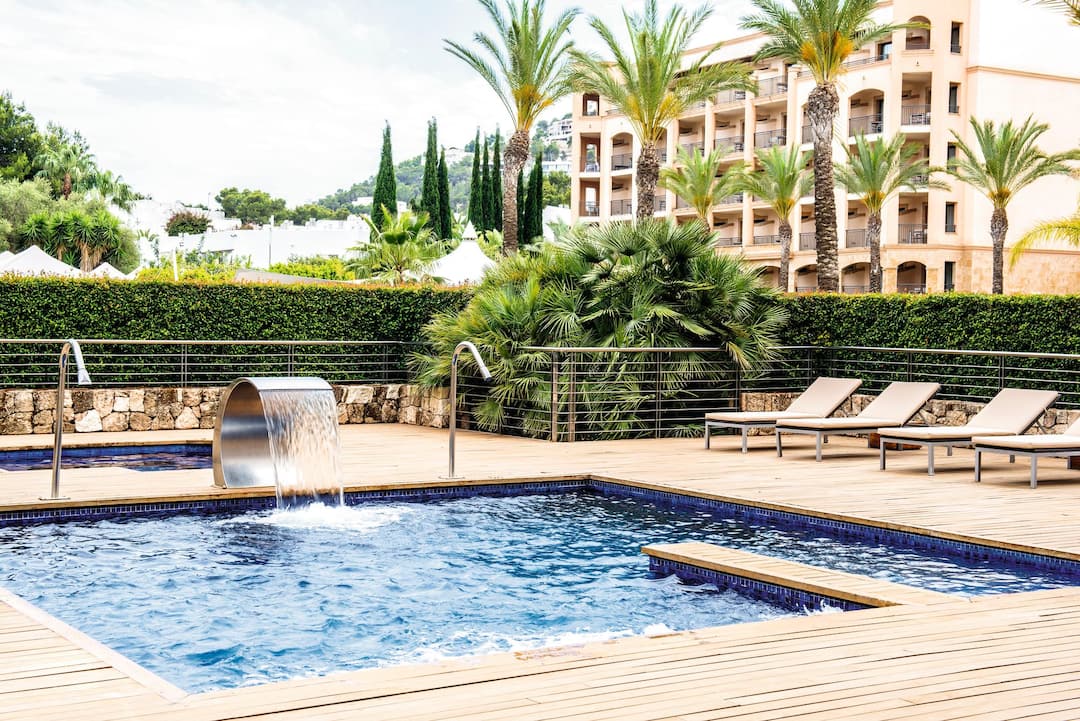 Set on the banks of the Santa Eulalia River, there are luxurious touches everywhere you look here. The pool’s incredibly stylish and there’s a whirlpool bath on the side. Kids even get their own pool while a poolside bar serves cocktails, snacks and ice creams. Away from the pool, the spa’s top of the range and provides a long list of treatments.