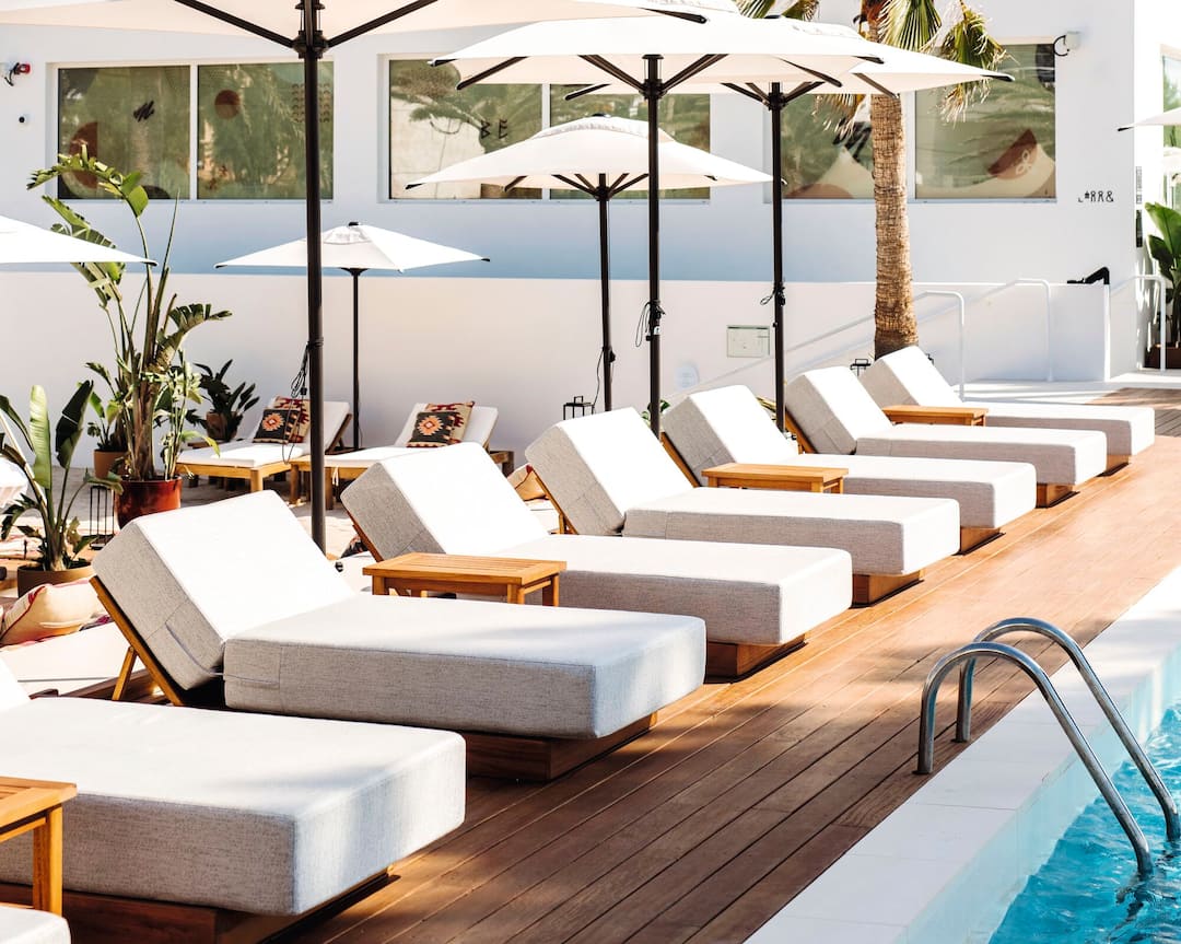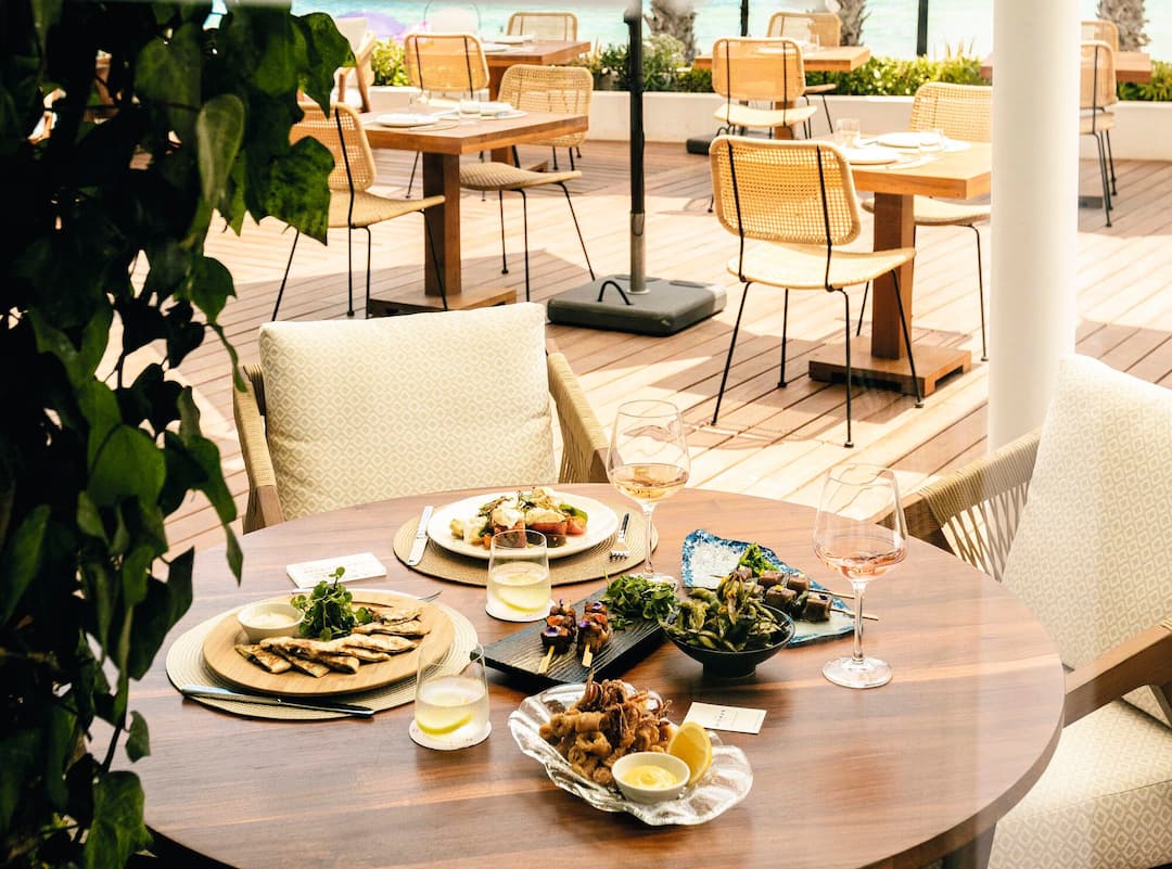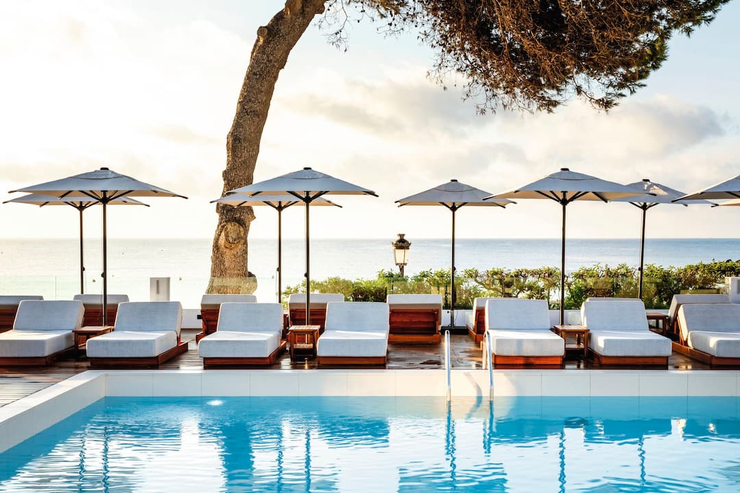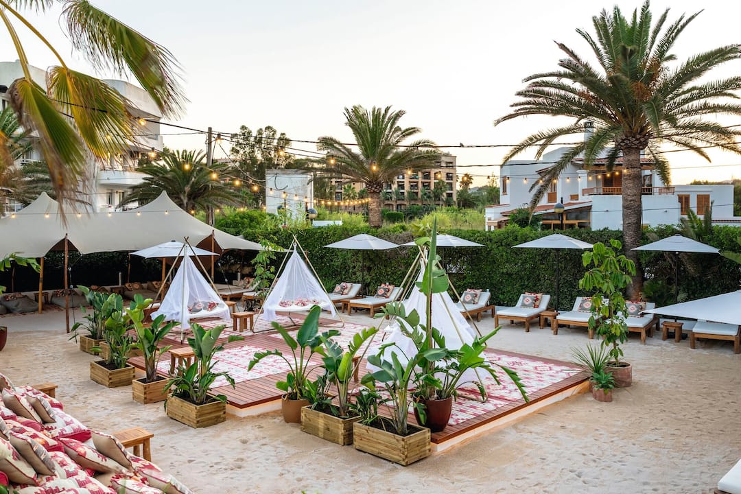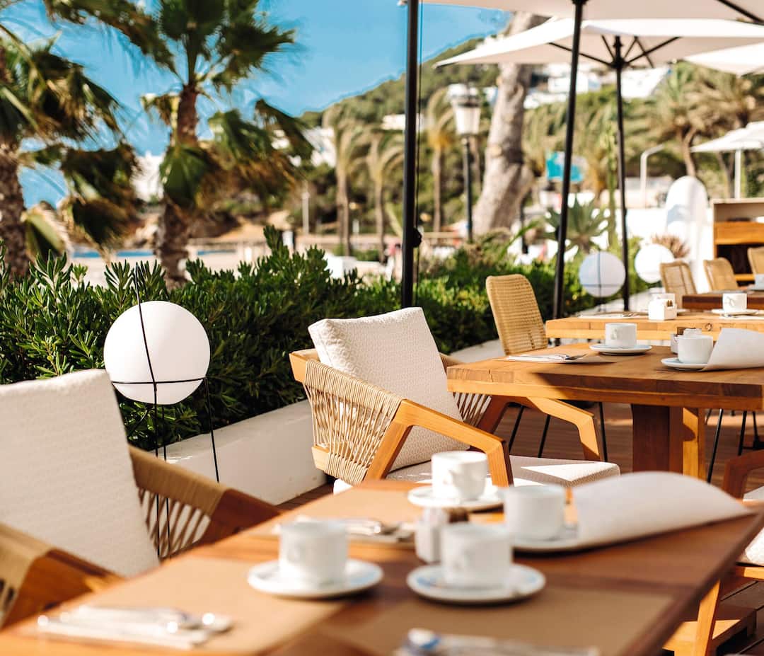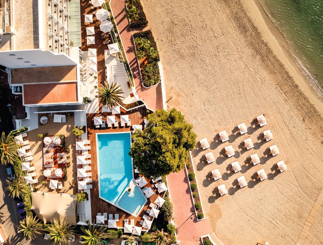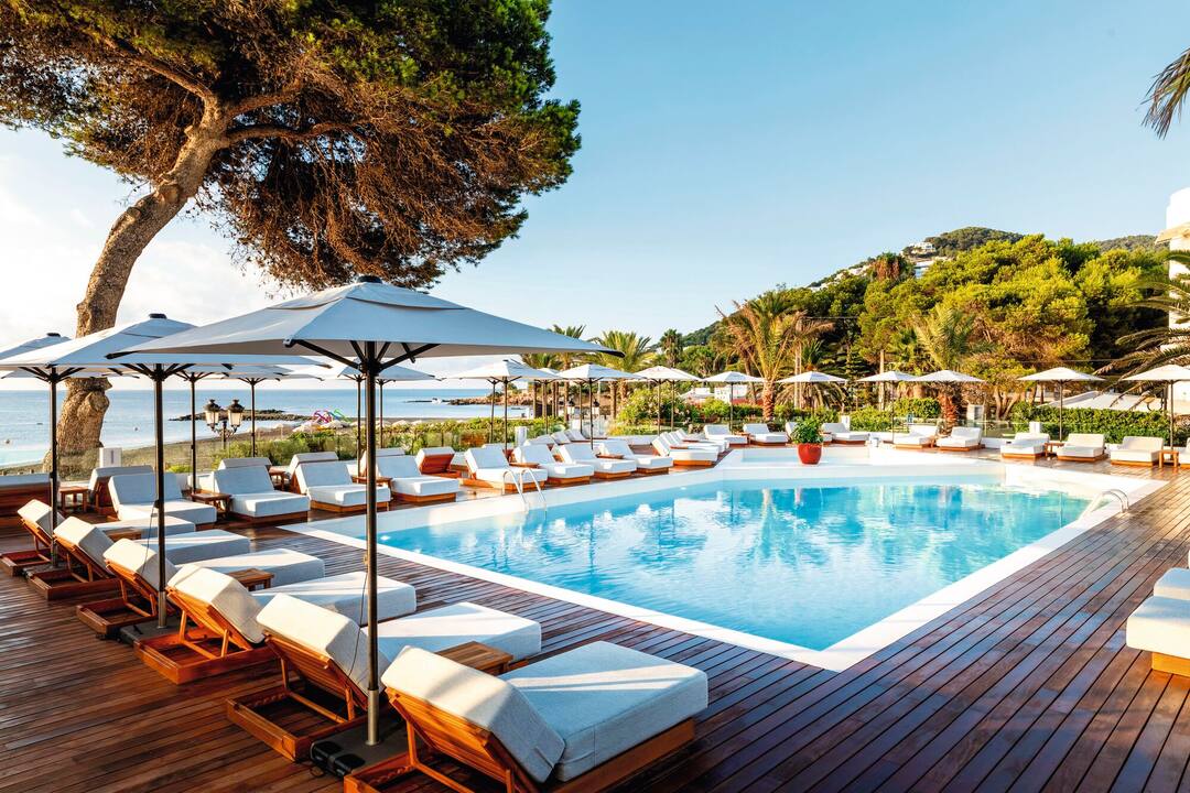 Newly opened in 2021, the Riomar Hotel is a paradise for those who love a stylish and sophisticated resort with deluxe beachfront rooms. In just a few steps you’re on the golden sands of Santa Eulalia where you’ll find comfy sunbeds and parasols giving you the ultimate sleek set up for a beach day. Then in just ten minutes along the palm tree lined promenade you’ll be in the centre of town where you can find plenty of action. The Riomar Hotel’s pool offers beautiful sea views with plush day beds, as well as a selection of decadent restaurants serving up a variety of dishes, including traditional Mediterranean and French cuisine. You can spend your evenings in the tiki style Secret Garden with acoustic music sets and specially crafted cocktails.Â