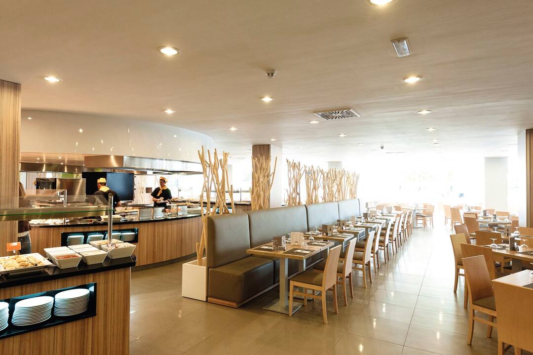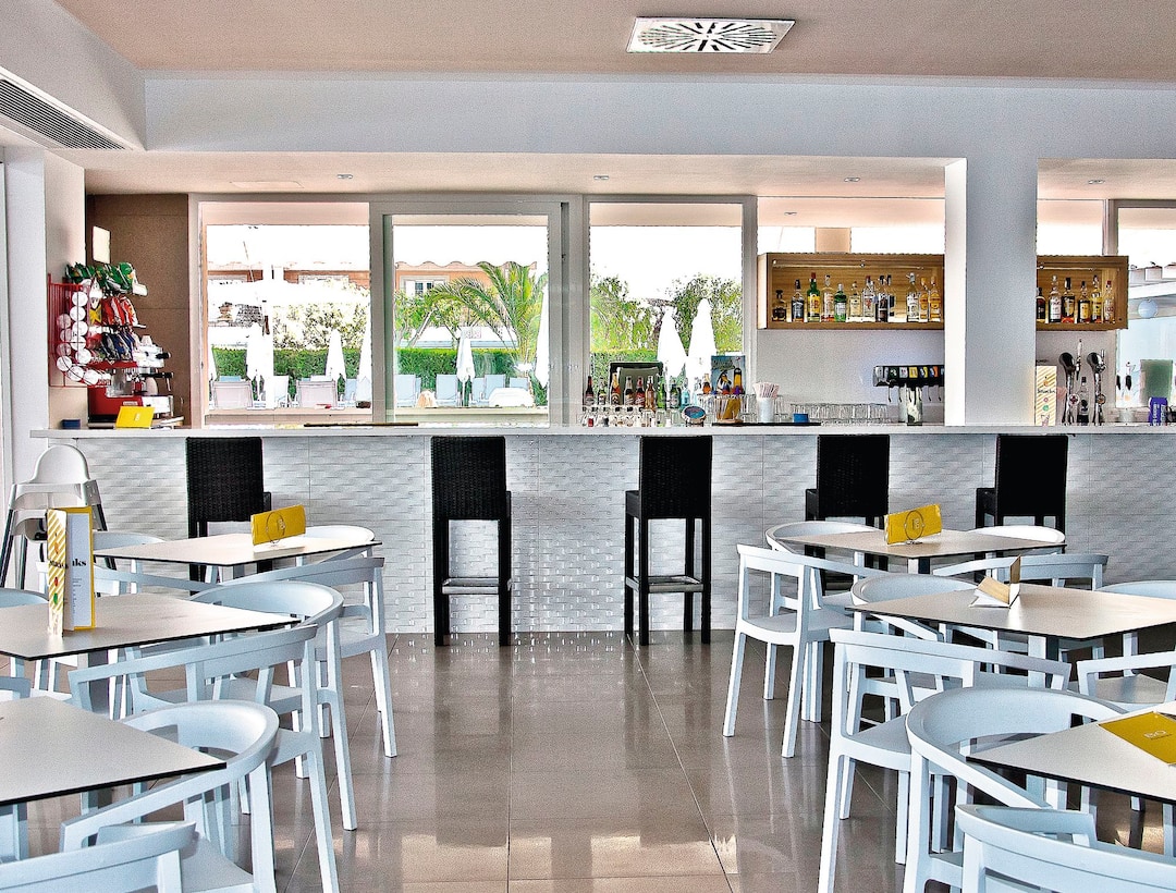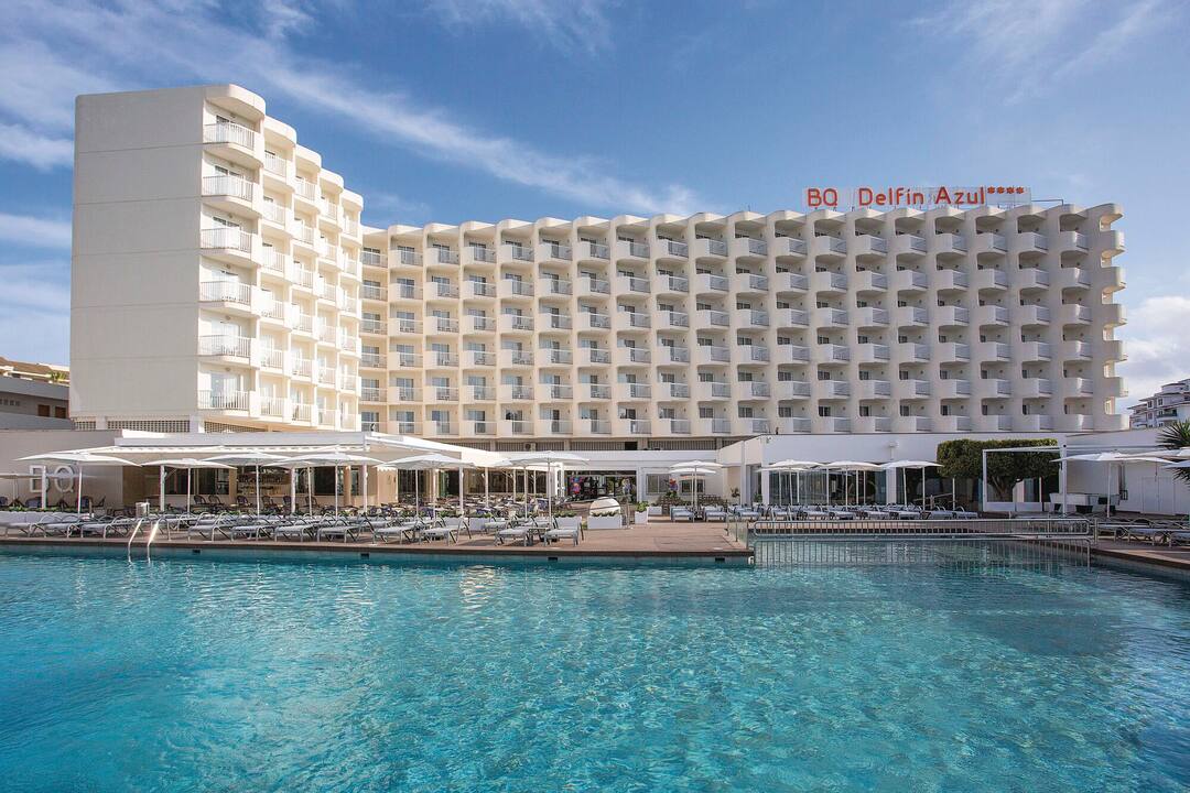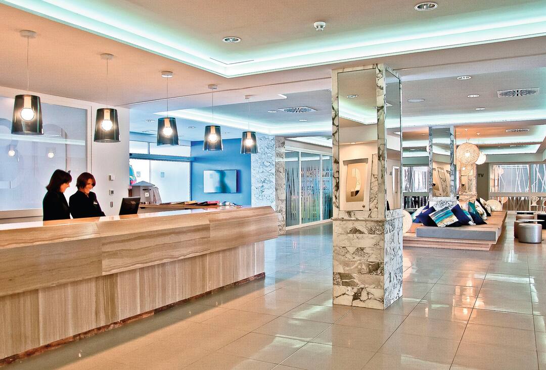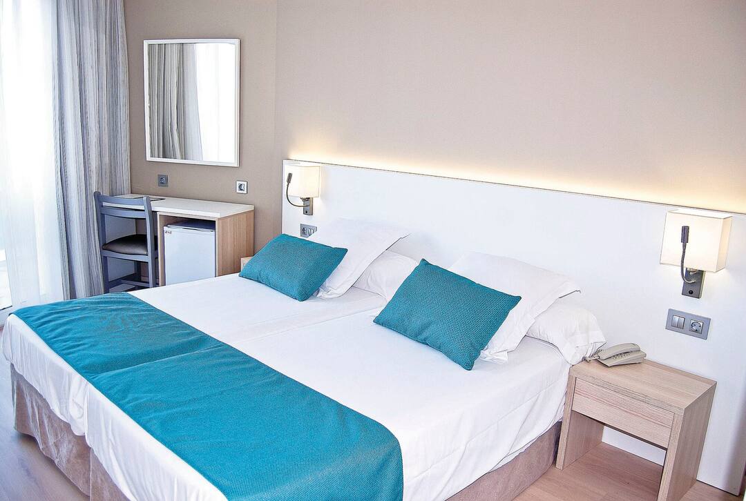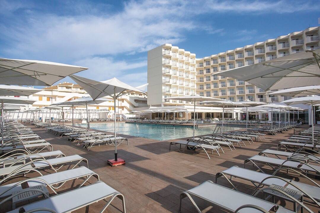 Delfin Azul Hotel offers everything you could want for a relaxed holiday. The modern rooms are decorated with splashes of turquoise and sea-blue, and downstairs is a sophisticated lounge area. Outside, you’ll find a large rectangular pool, with a shallower section for children. There’s also a splash park, a playground and a kids’ club, to keep the little ones entertained. Meanwhile, you can relax in the sun with a drink from the pool bar, tuck into an international spread at the buffet restaurant, or dine al fresco on the terrace. The hotel is located in the modern resort area of Alcudia, a short walk from Alcudia Beach.