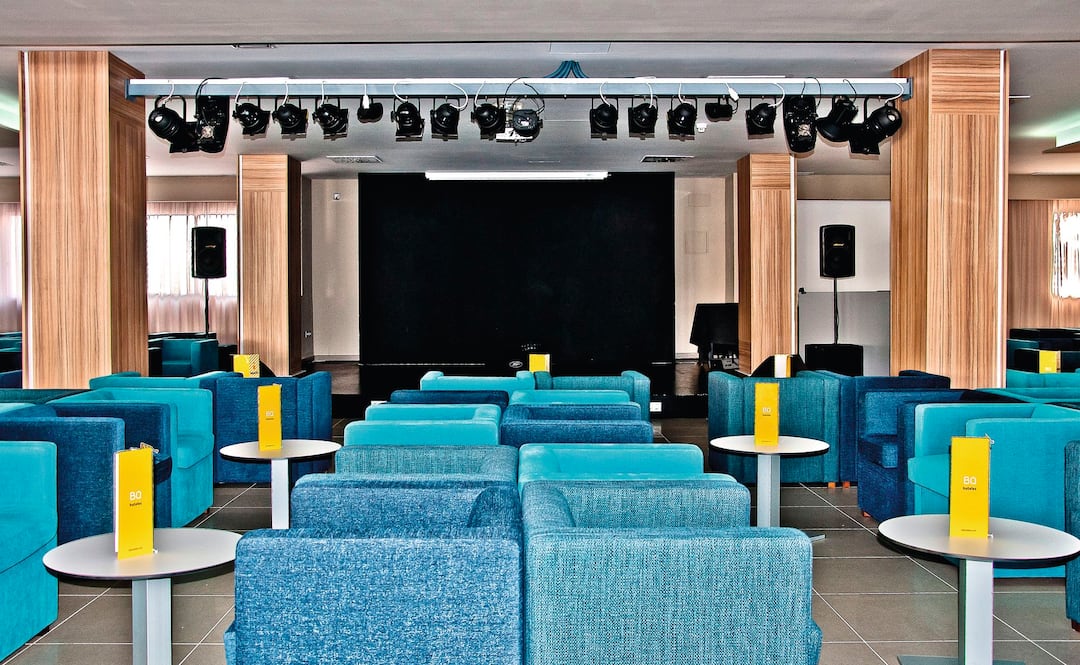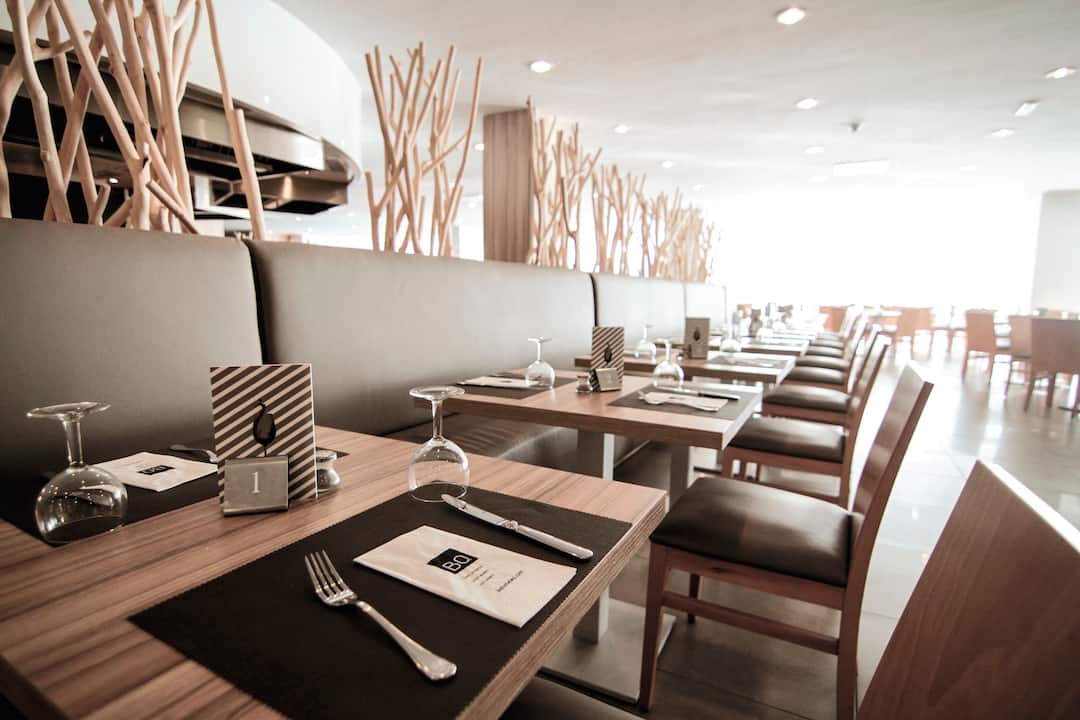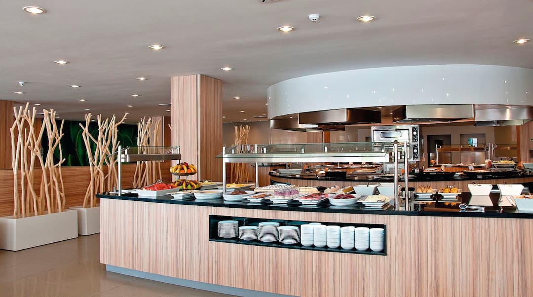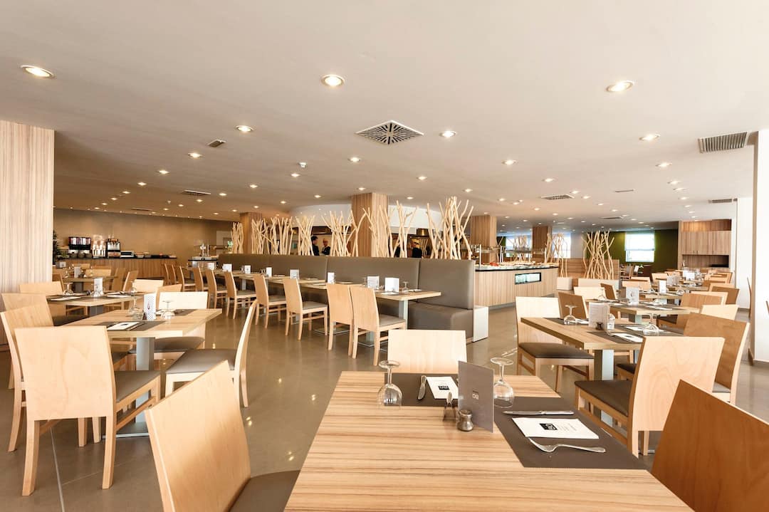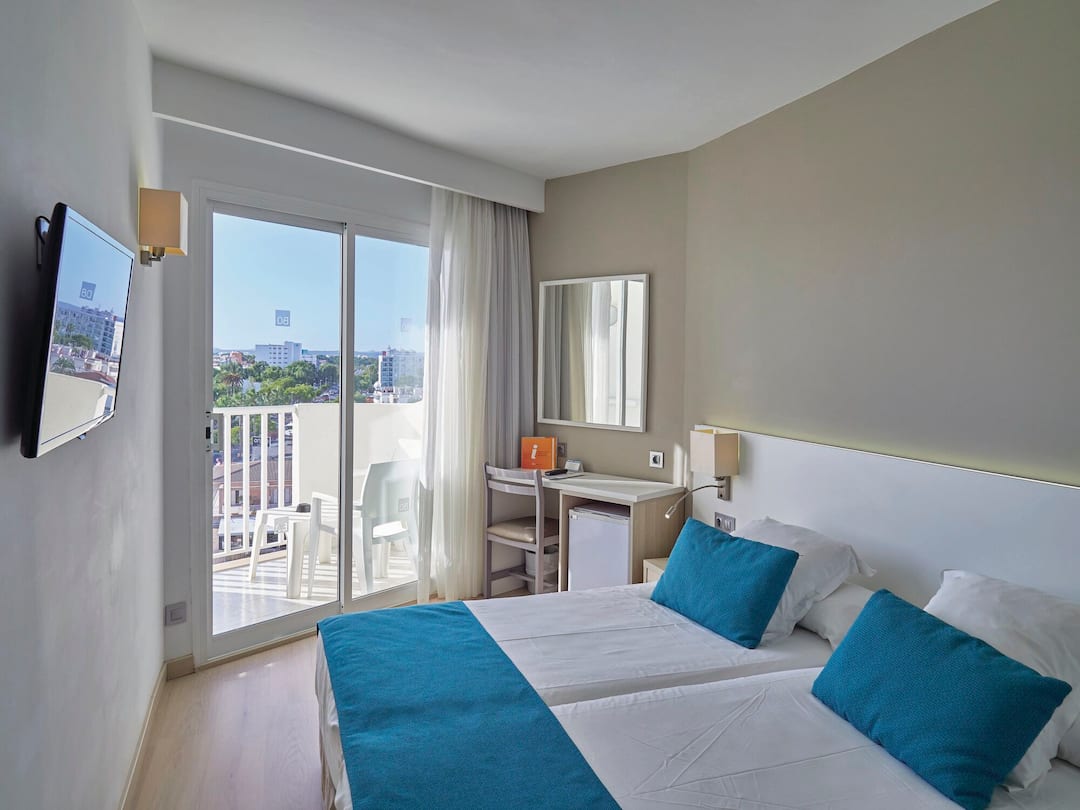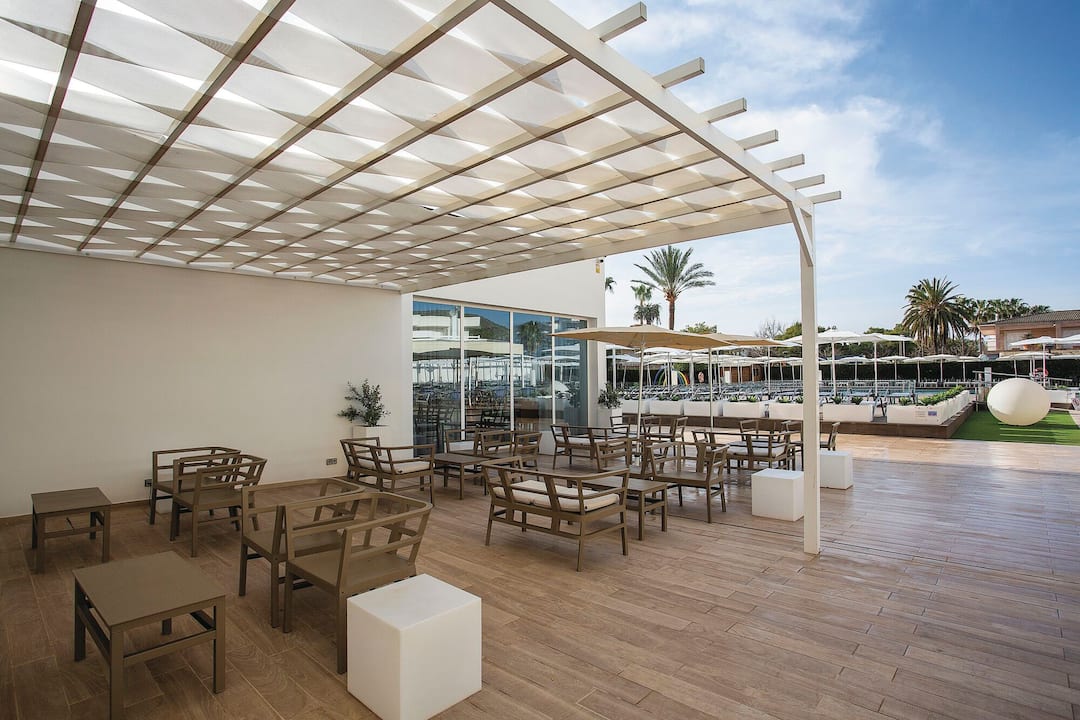 Delfin Azul Hotel offers everything you could want for a relaxed holiday. The modern rooms are decorated with splashes of turquoise and sea-blue, and downstairs is a sophisticated lounge area. Outside, you’ll find a large rectangular pool, with a shallower section for children. There’s also a splash park, a playground and a kids’ club, to keep the little ones entertained. Meanwhile, you can relax in the sun with a drink from the pool bar, tuck into an international spread at the buffet restaurant, or dine al fresco on the terrace. The hotel is located in the modern resort area of Alcudia, a short walk from Alcudia Beach.