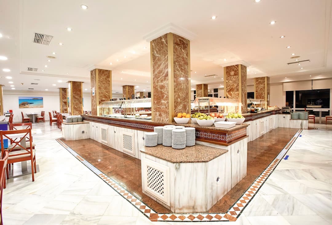 Fantastically close to the beach, a range of handy shops and restaurants and a bus stop, the hotel is as well positioned as it is welcoming and comfortable, with a large pool and excellent buffet restaurant on-site. The pool scene is delightful here, with two bars serving up a range of snacks during the day, but with the beach just 150m away, you can swap your lounger for soft sand whenever the mood takes you.