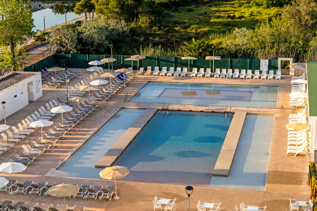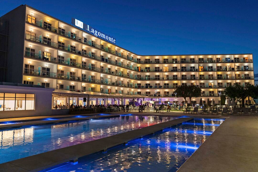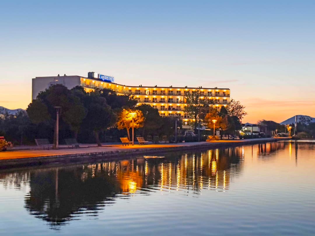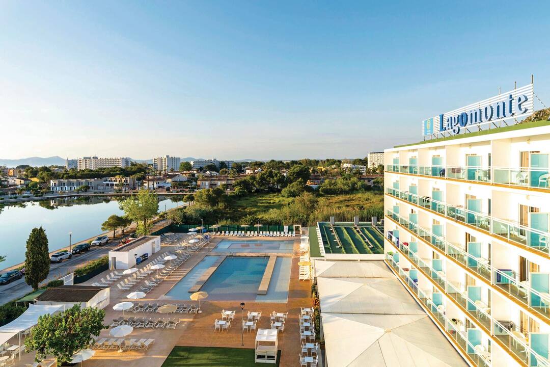 The TUI SUNEO Lagomonte scores top points for its serene location, on the shores of Lago Menora Lake. The main pool has fantastic lakeside views and a smaller splash pool for kids. A second pool is tucked away, with its own bar, behind the trees on an island in the middle of a lake. You’ll find a modern interior decorated with bright splashes of colour. The buffet restaurant serves quite a spread, including barbecues in the evening. There’s a jam-packed evening entertainment programme, including tribute acts, musicians and karaoke. It’s a 10-minute walk to the centre of Alcúdia, and the hotel also runs free shuttle buses to the beach.