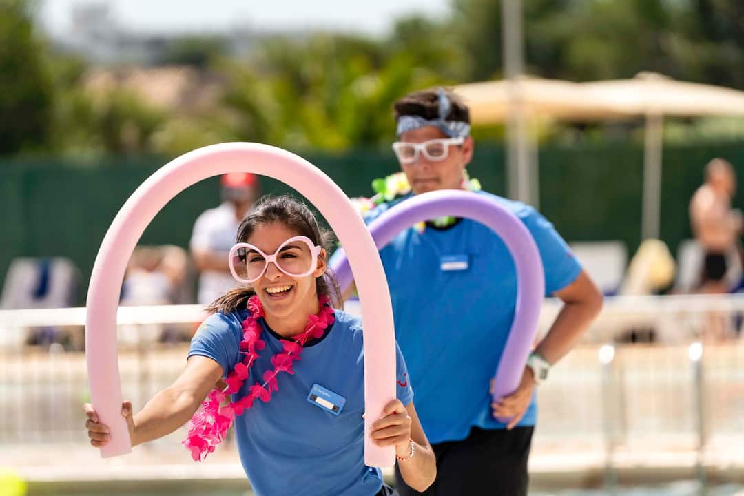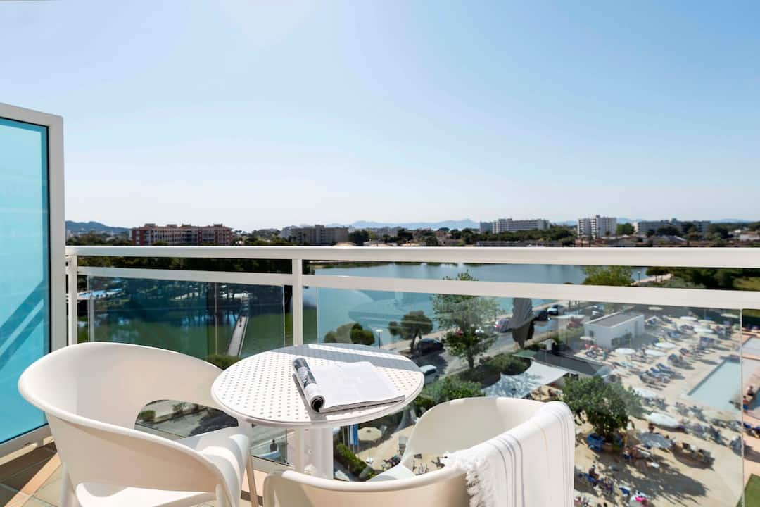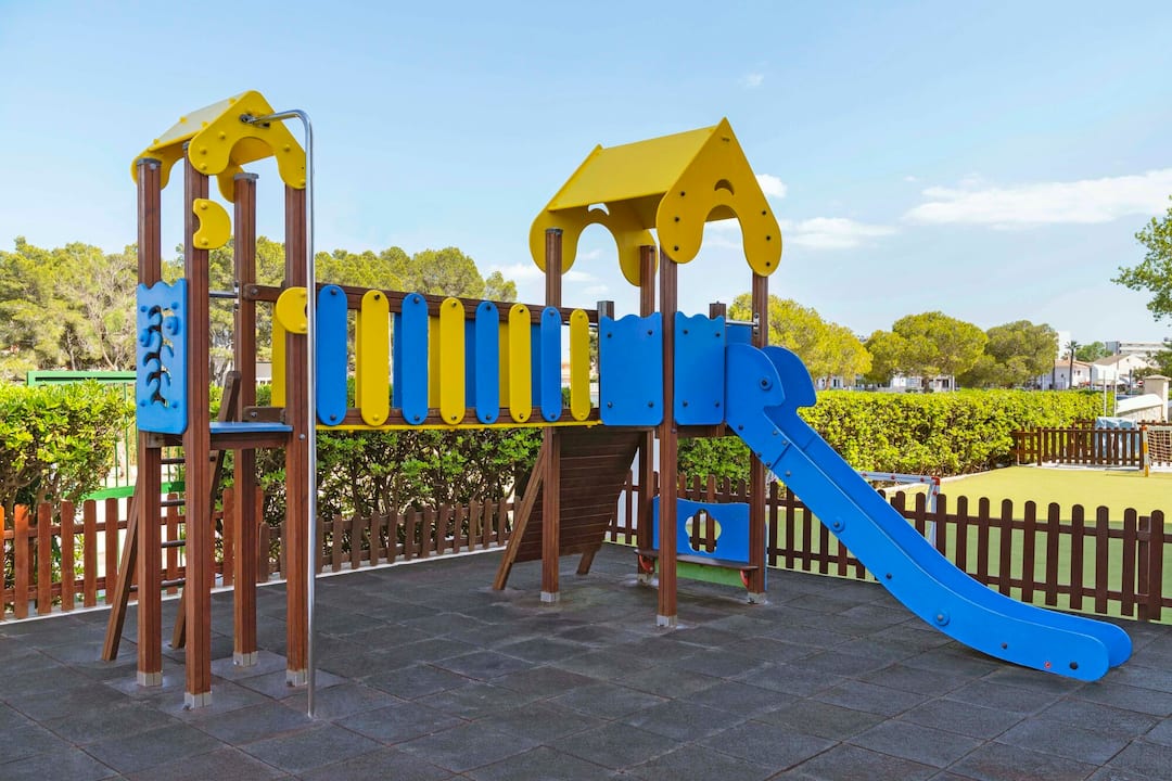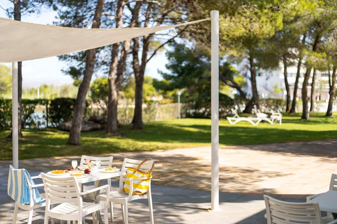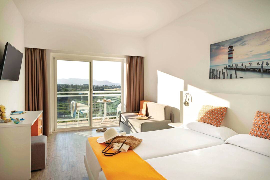The TUI SUNEO Lagomonte scores top points for its serene location, on the shores of Lago Menora Lake. The main pool has fantastic lakeside views and a smaller splash pool for kids. A second pool is tucked away, with its own bar, behind the trees on an island in the middle of a lake. You’ll find a modern interior decorated with bright splashes of colour. The buffet restaurant serves quite a spread, including barbecues in the evening. There’s a jam-packed evening entertainment programme, including tribute acts, musicians and karaoke. It’s a 10-minute walk to the centre of Alcúdia, and the hotel also runs free shuttle buses to the beach.