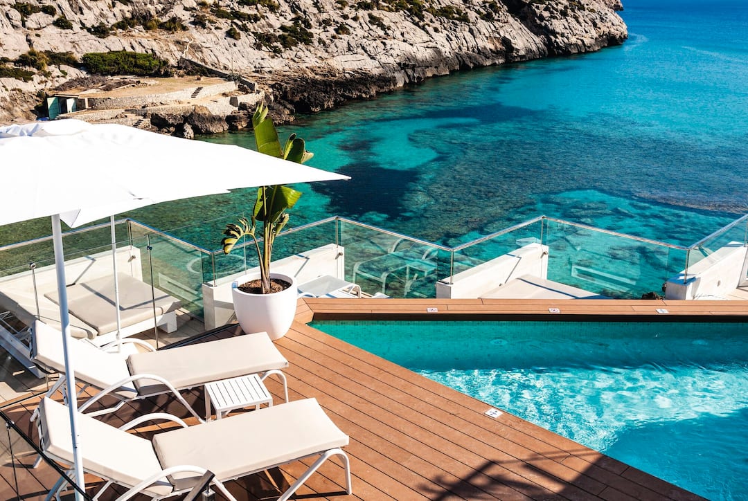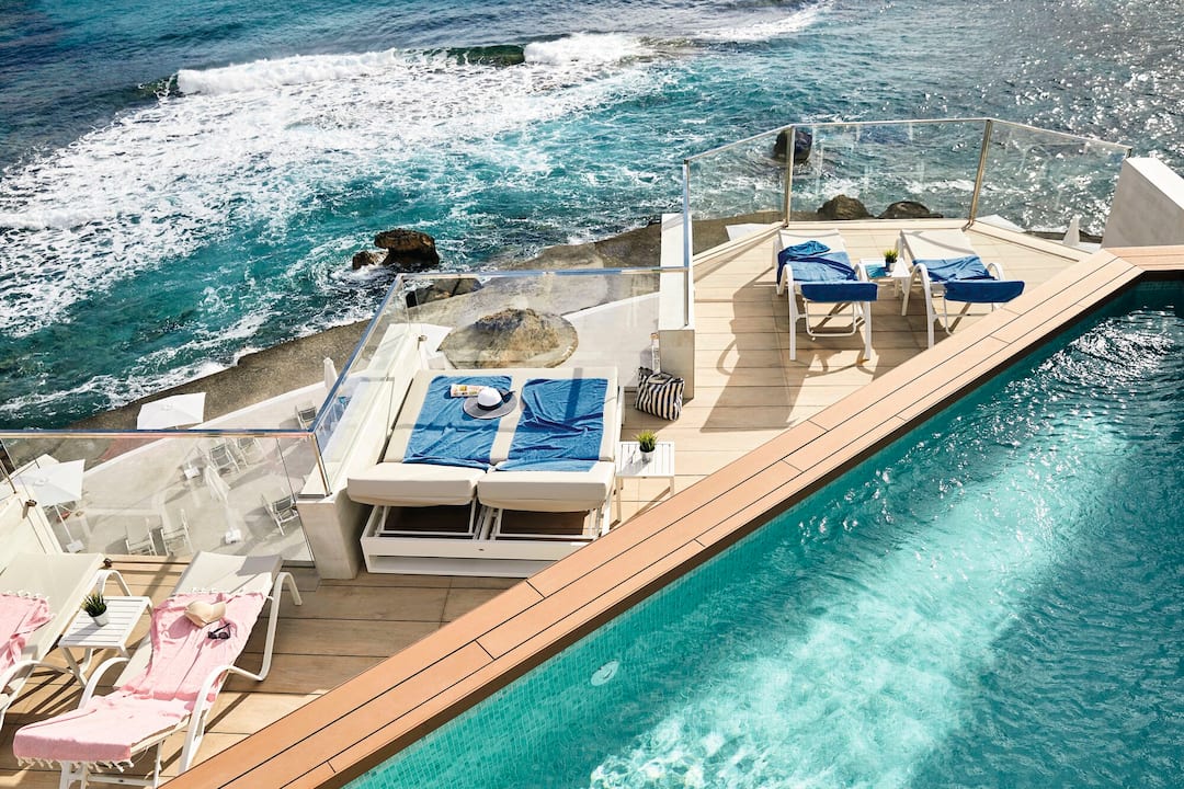The TUI Sensimar Don Pedro is pulled right up against the shore, so the sea views are really something. Steps lead down to two petite sandy coves that frame the property. At the hotel, loungers line the outdoor pool. There’s also a pair of pool bars for drinks and snacks.