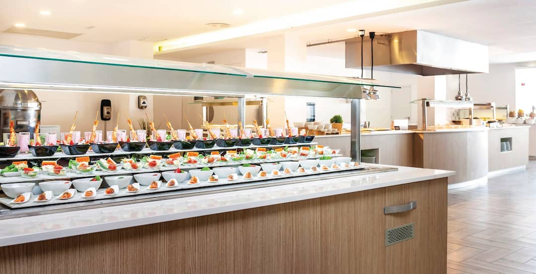 For meals, there’s a buffet restaurant with stations where you can watch the chefs at work. Plus, there’s also an a la carte eatery that specialises in Majorcan favourites. Evenings are all about watching the sunset with a relaxing drink at the rooftop bar.