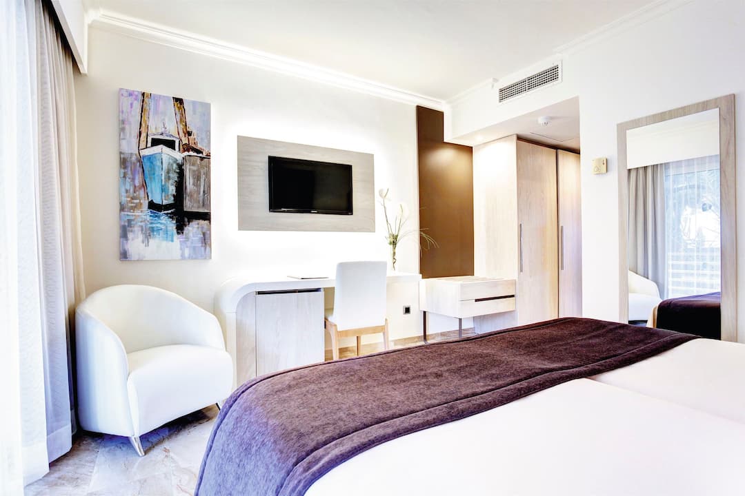 The Grupotel Gran Vista Spa is located in the heart of Ca’n Picafort on Majorca’s eastern coastline. You’ll be just 150m from Ca’n Picafort Beach, full of vendors selling refreshments as well as launch points for day trips and water sports across the bay. Adorned with two lagoon pools and an atmospheric rooftop bar, you’ll have the opportunity to indulge in the sunshine with a beer or two while the kids take a splash in the pool. Spend your evenings in the many restaurants and bistros close by, and soak up coastal views of the Mediterranean Sea.