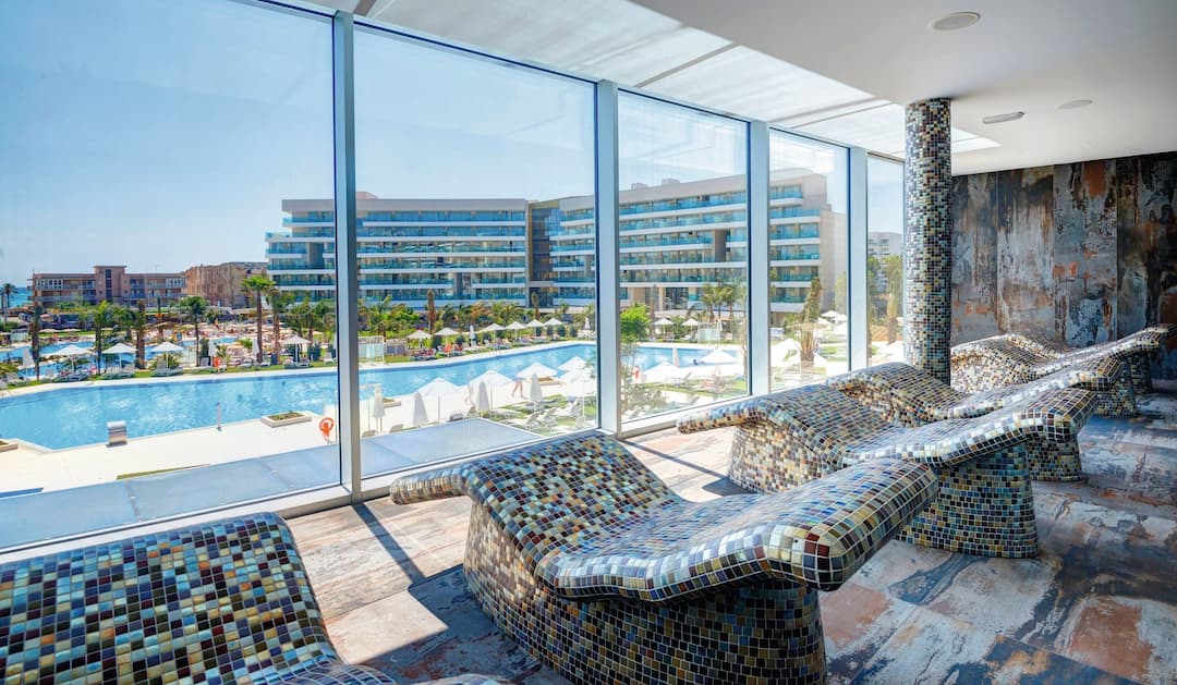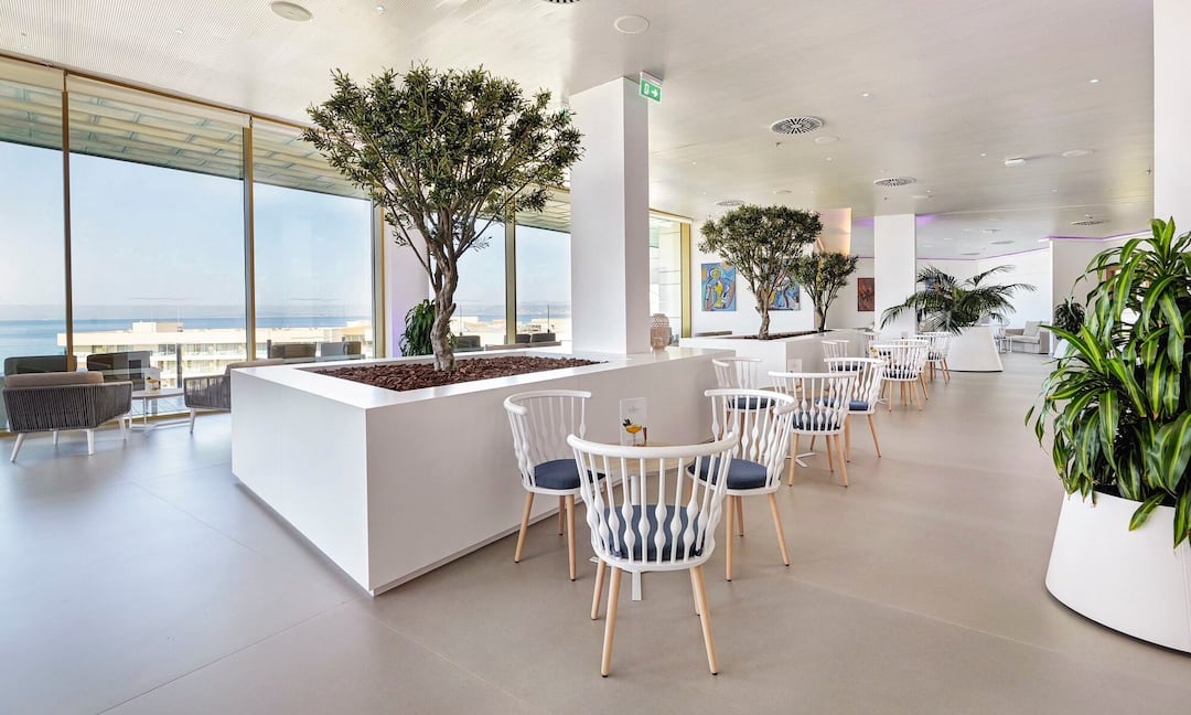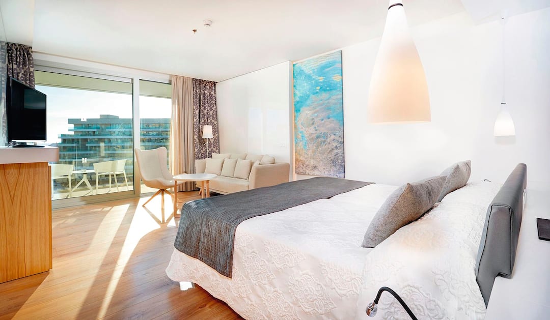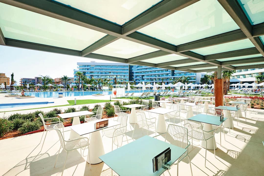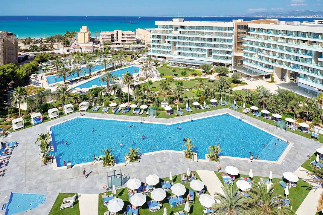 The Hipotels Playa de Palma Palace is an incredibly modern property. The outdoor pool spreads across a manicured garden and comes with Bali beds, and throughout the day, the stylish pool bar keeps you topped up with snacks and cocktails.