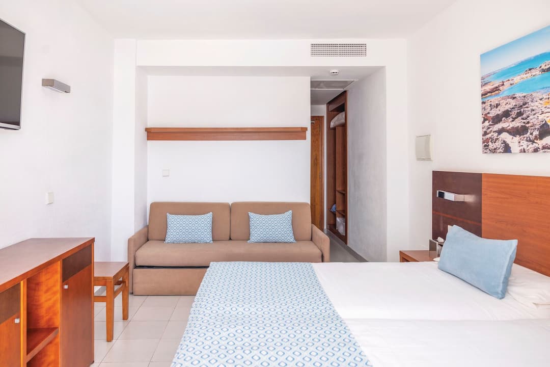 There’s never a dull moment thanks to the action-packed activity programme and a great pool scene at Globales Bouganvilla Hotel. Spacious bedrooms are decorated in neutrals and ocean blues and have balconies and terraces. Outside two huge pools welcomes you with loungers and an open-air bar. Water polo and aqua aerobics are on offer, and there’s even a small splash pool for kids. And to top it off, the hotel has its own private waterpark, boasting a kamikaze ride, race-rafting rides and a freefall slide. The hotel has an international buffet, a pizzeria and a barbecue grill restaurant, so you’ll be spoilt for choice. The nearest beach and the resort centre are less than a mile away.