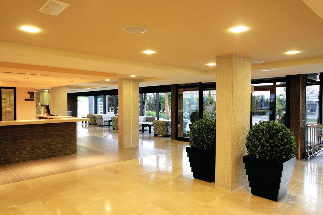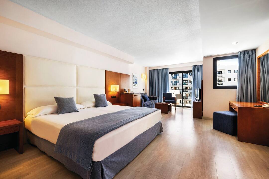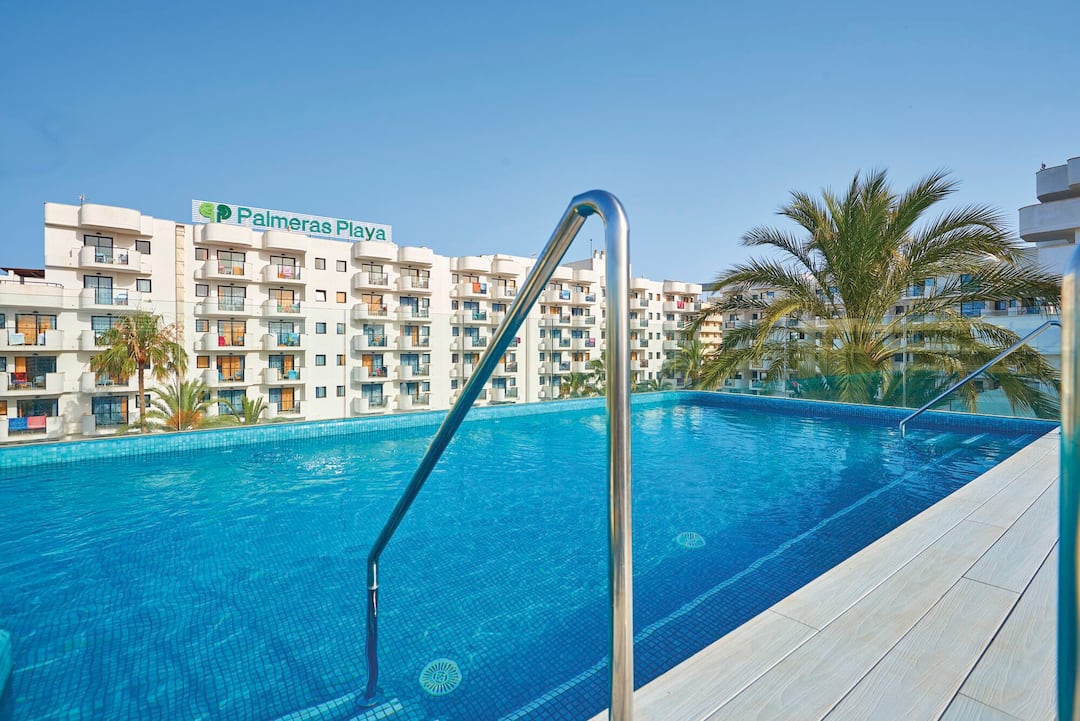 Stylish, modern ensuite apartments with a white exterior and a sleek, glass-fronted entrance await you at the Protur Palmeras Playa Hotel. You’re steps away from a large pool complete with a children’s section where you can also enjoy your refreshing cocktail from the poolside bar on the sun terrace. Take your pick from the number of sports and leisure opportunities available. The entertainment team puts on a wide variety of fun-filled activities everyone will love from children’s Mini Club to a packed agenda including tennis, aqua gym and darts. Later, a buffet restaurant serves a selection of local and international dishes while you enjoy an evening programme of shows and live music.