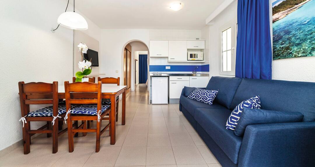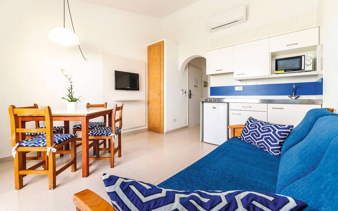 The Globales Apartamentos Binimar is close to the beach and the centre of Cala’n Forcat, so it’s easy to enjoy days on the sand or wander around the resort’s shops.