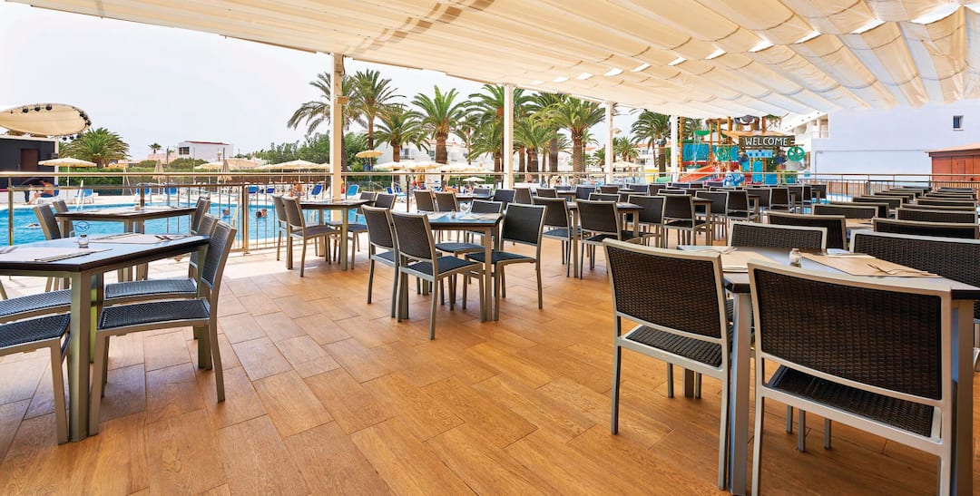 Globales Los Delfines is a family-centric hotel just a short walk from the beach and the lively centre of Cala’n Forcat. This hotel offers a range of amenities, including two outdoor pools for adults, flumes, a children’s pool with splashpark, and a large sun terrace with plenty of loungers and umbrellas. You can choose between a variety of foods at meal times with the buffet restaurant, where there’s even a kids’ section, and with a couple of bars the adults are kept happy too. Globales Los Delfines hotel also provides entertainment for all ages, with activities such as table tennis, darts, and a game room throughout the day and family-friendly entertainment in the evenings.