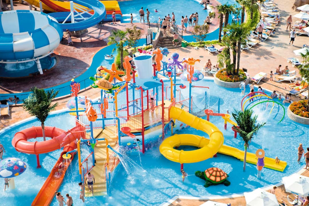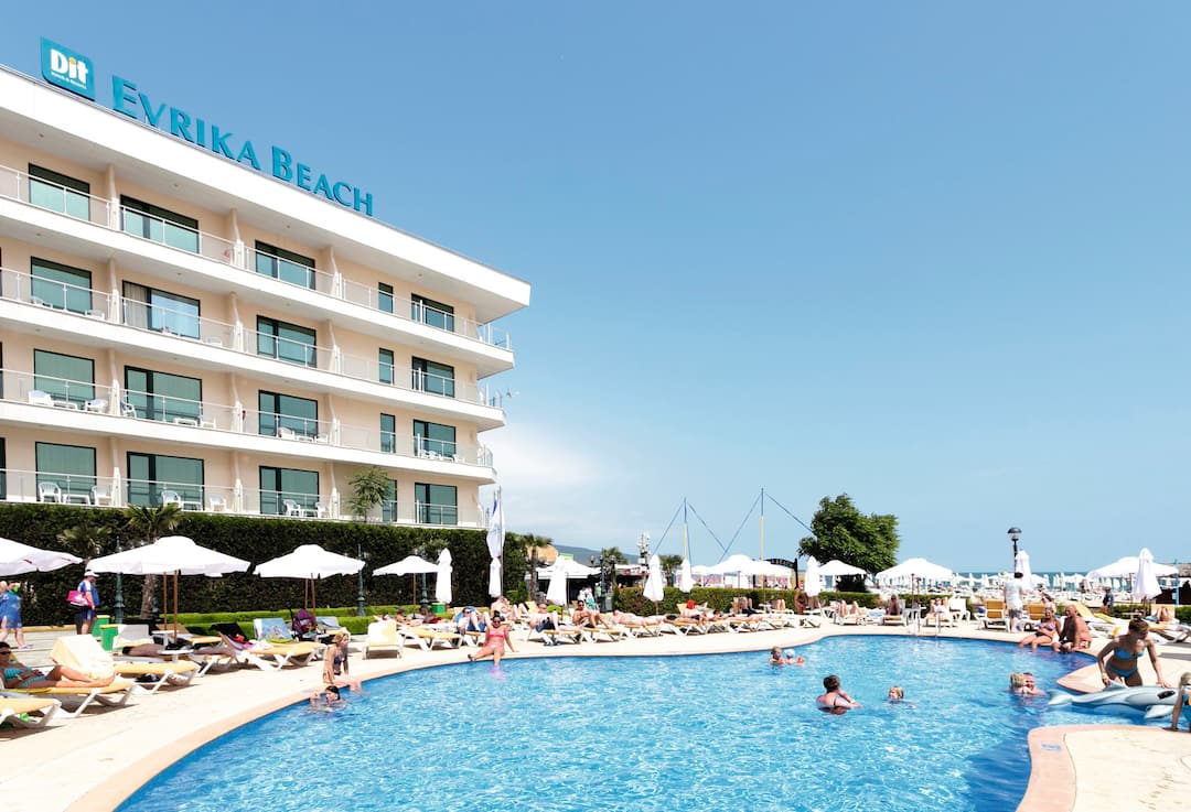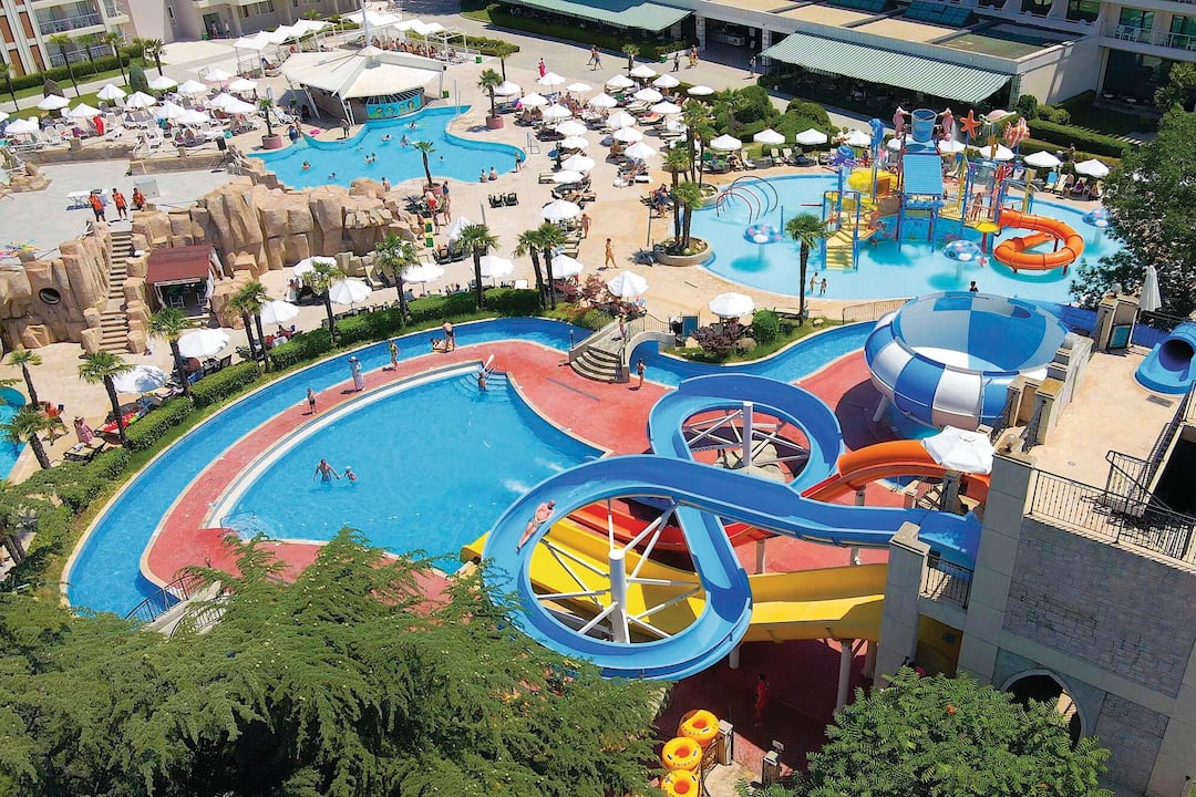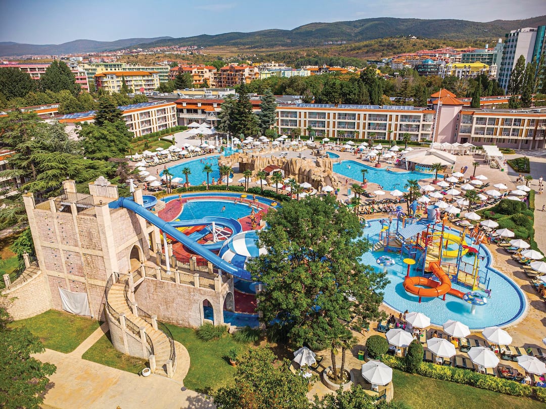 Just a few steps away from a glorious sandy beach, the DIT Evrika Beach Club Hotel is all kinds of wonderful. It’s also just a five-minute walk from the resort centre of Sunny Beach, so there’s plenty of scope for exploration. There are three pools to choose from on-site, one of them complete with its own water park – a sure-fire hit with young ones. And when it comes to dining, foodies will be spoilt for choice with four restaurants to choose from, serving everything from Bulgarian specialities to Asian a la carte. This hotel is just the thing for active families, with 2 playgrounds, a five-a-side-football pitch and table tennis available.
