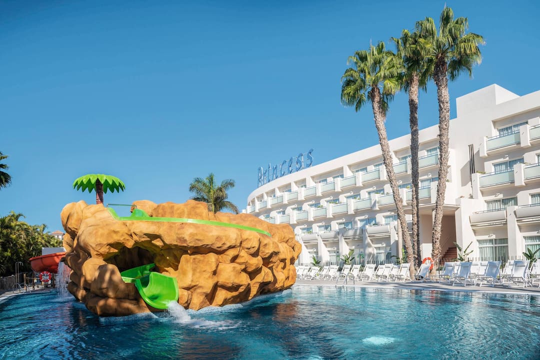 The luxurious Maspalomas and Tabaiba Princess has five large pools, bars offering drinks and snacks, a sauna, a gym and a range of activities on-site including boules, aqua aerobics and Zumba. Along with two kids pools, little ones are also kept entertained with a playground and a hotel-run kids’ club. When it comes to food, the buffet restaurant provides a mix of cooked and continental breakfasts. In the evenings, choose from a range of cuisines and themed nights, such as Canarian or Mexican. All rooms are elegantly decorated in a modern style and come with satellite TV, air-conditioning and a balcony or terrace.