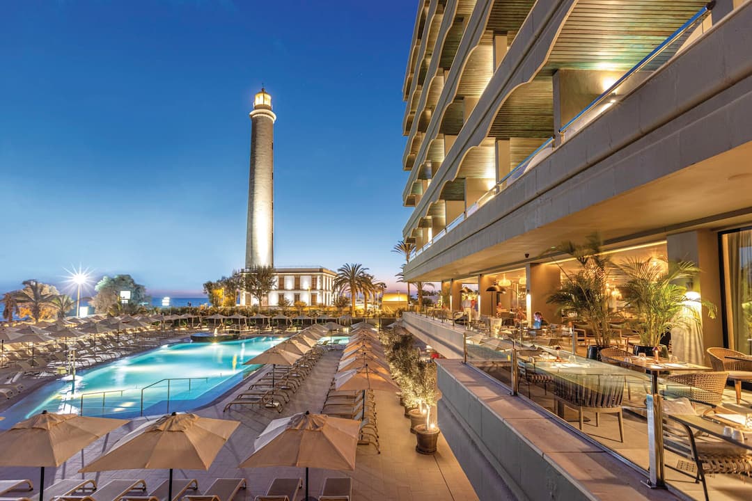 The Hotel Faro, a Lopesan Collection Hotel has one of the best locations in Meloneras and leaves you right on Meloneras Beach. Plus, you have the Maspalomas Dunes only a few minutesÂ’ walk away.