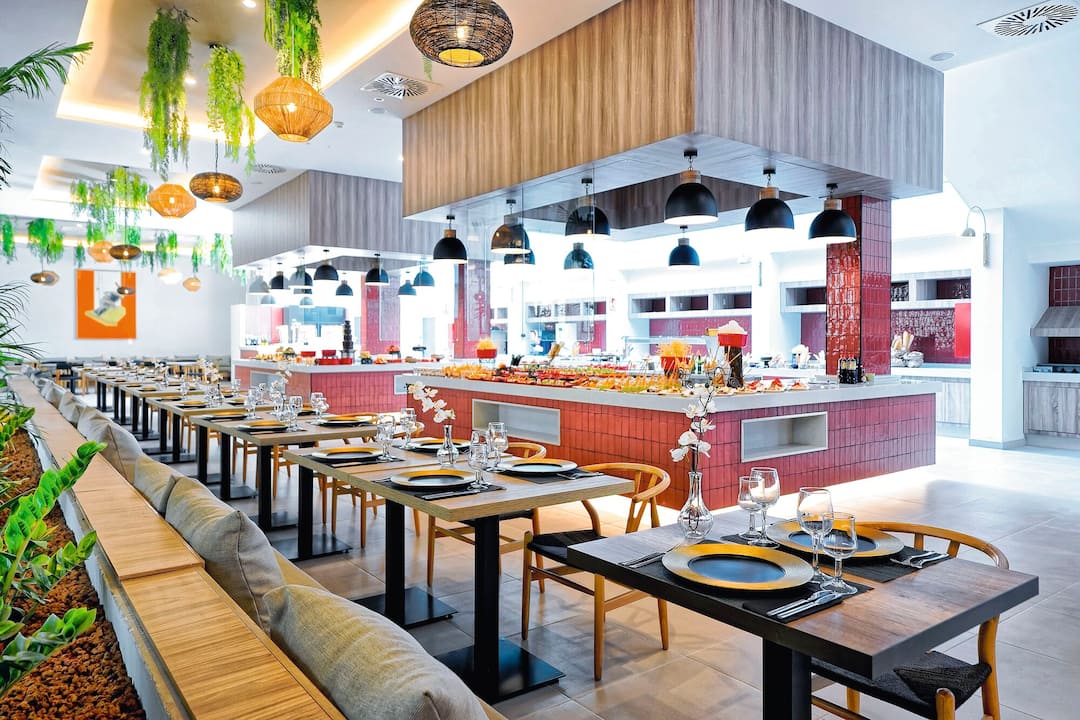 The restaurant serves freshly cooked breakfasts and vast buffet spreads. Everything here’s family friendly, so even the fussiest eater will have plenty of choice. And after your evening meal, the entertainment of discos, singers and dancers kicks in.