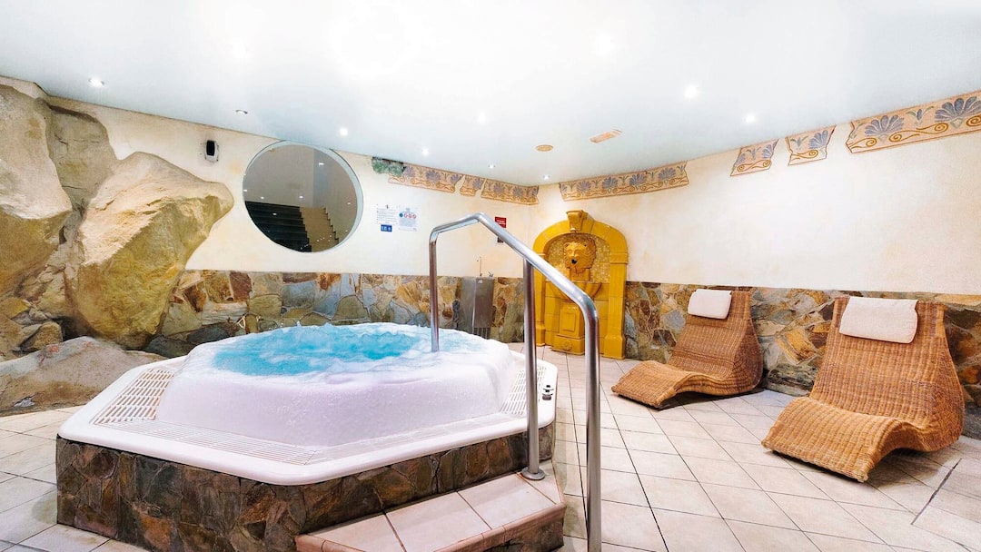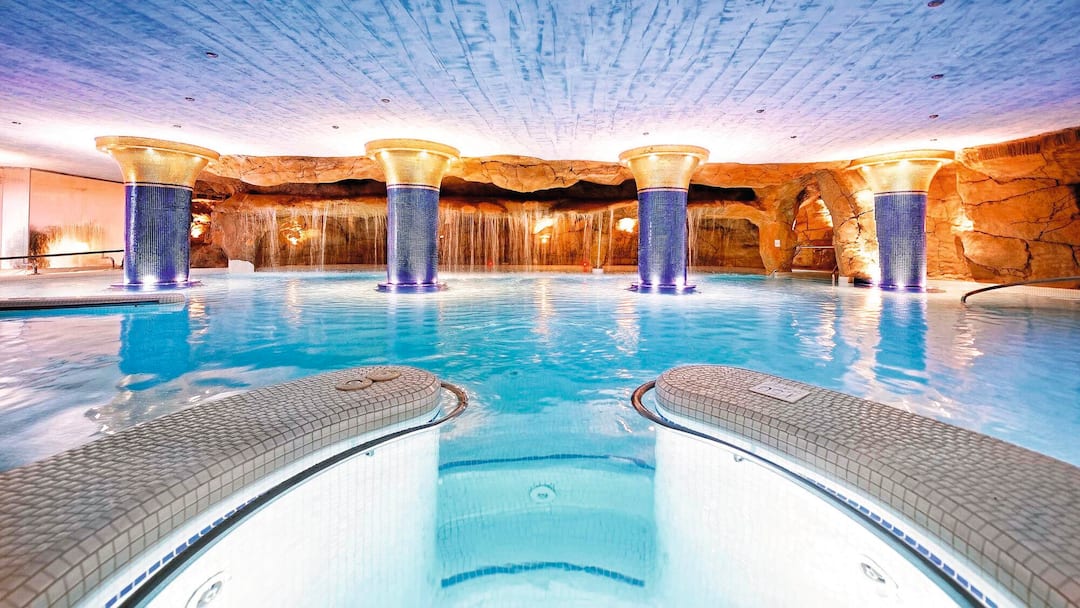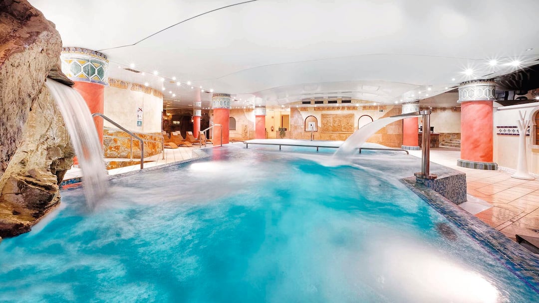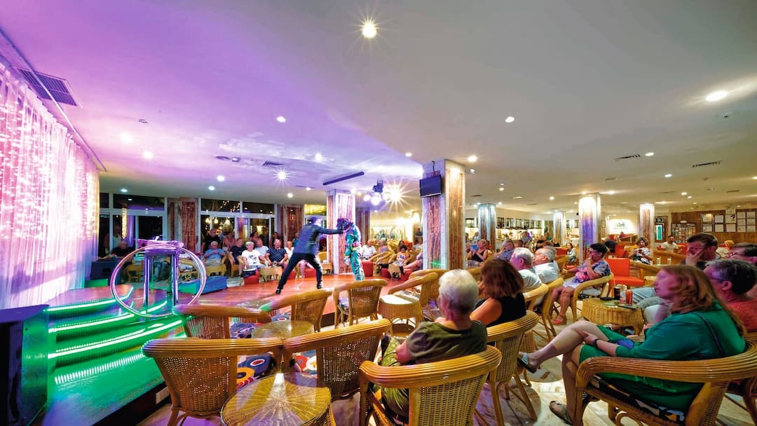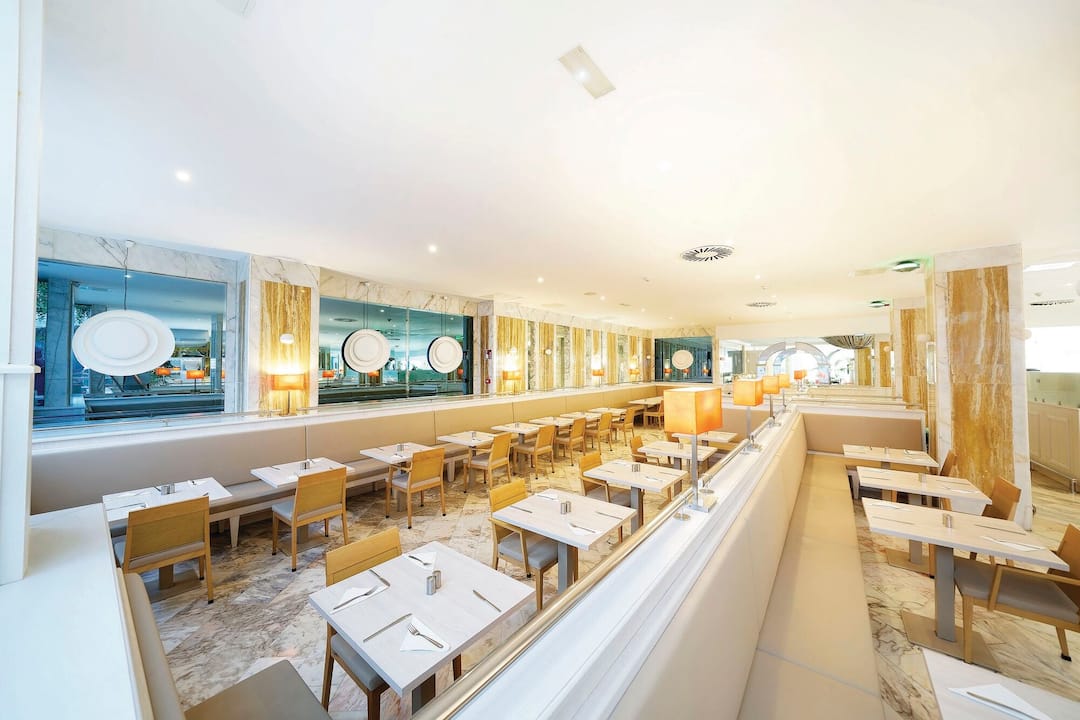 During the day, there’s a gym and a spa inside the hotel. In the grounds, there are squash courts, a mini-golf course and a children’s playground. In the evening, live acts range from flamenco dancers to jazz bands.