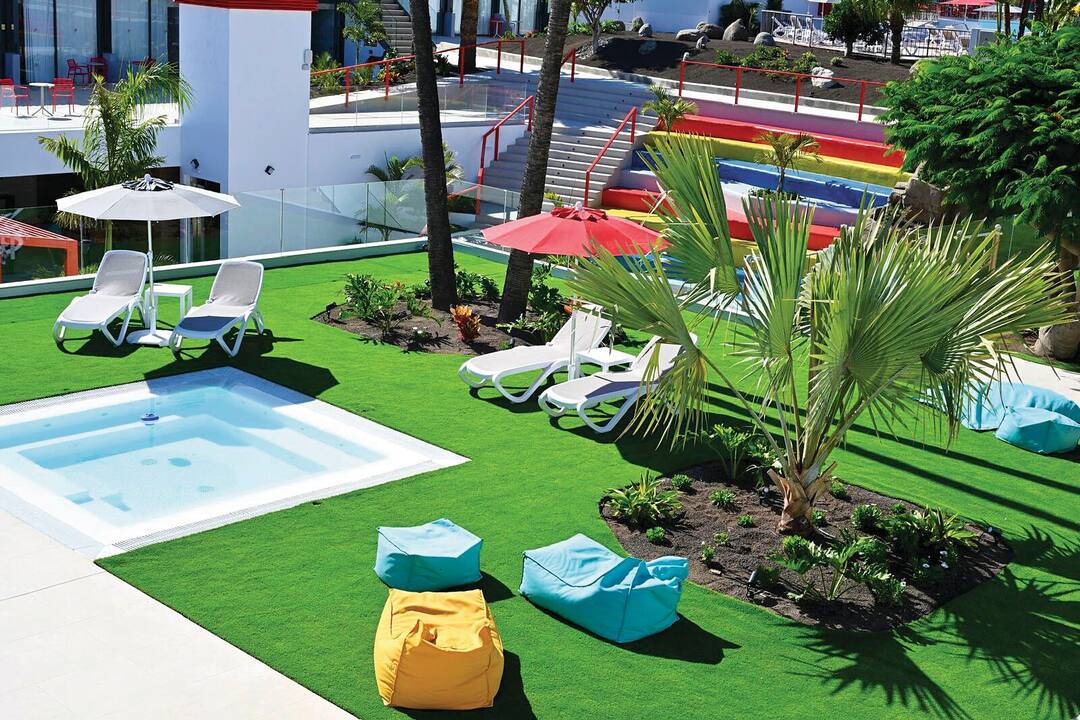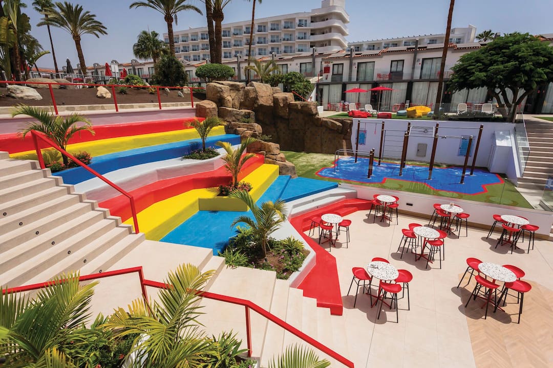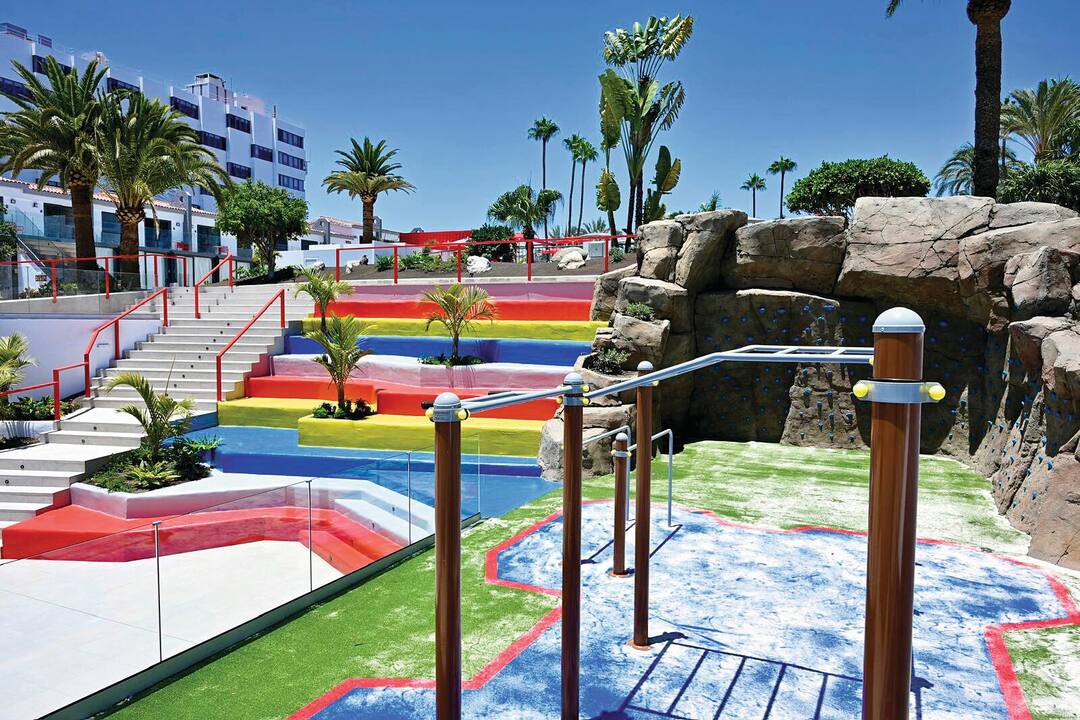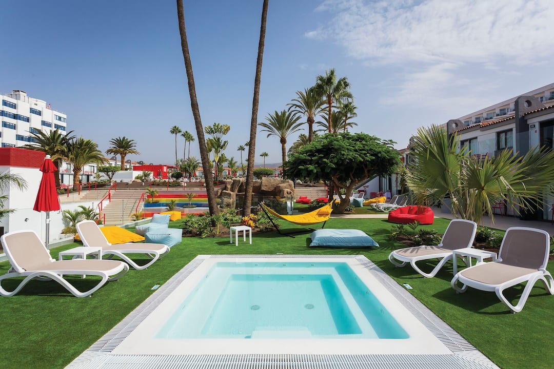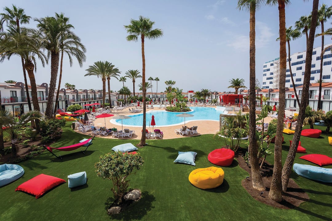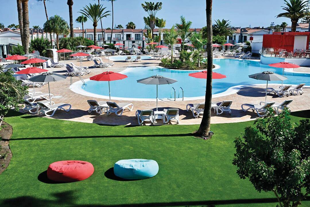 Jardin Del Sol Apartments is made up of split-level apartments surrounding a courtyard, which features a large lagoon-style pool, a bar and comfy chill-out areas. There’s also a children’s pool and a covered playground for the little ones to enjoy. The apartments come with twin bedrooms and a sofa-bed in the lounge. You’ll have a kitchenette with two electric rings, a toaster, kettle and a fridge. Each apartment also has a TV, and Wi-Fi is available at a small additional cost. The complex is a 10-minute walk from the centre of Playa del Ingles, and the beach is a convenient 20-minute stroll away.