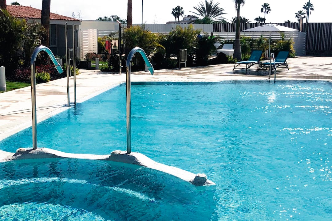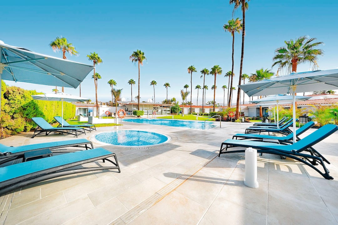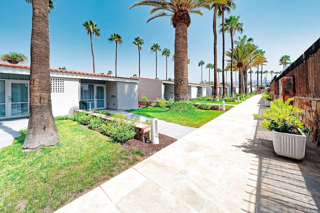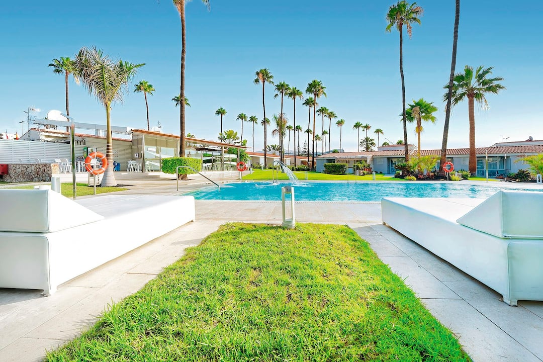 A small collection of two to four person bungalows set in palm-fringed gardens, Los Girasoles is a perfect spot for guests looking for a slice of tranquility amid the hustle and bustle of Playa del Inglés. The complex features a pool with a bar and has a friendly, village feel. Located in the town centre and just a 15-minute walk from the beach, there’s also a self-service laundry and Wi-Fi on-site. The bungalows are equipped with kitchenettes and grassy front gardens, perfect for dining in the sun.