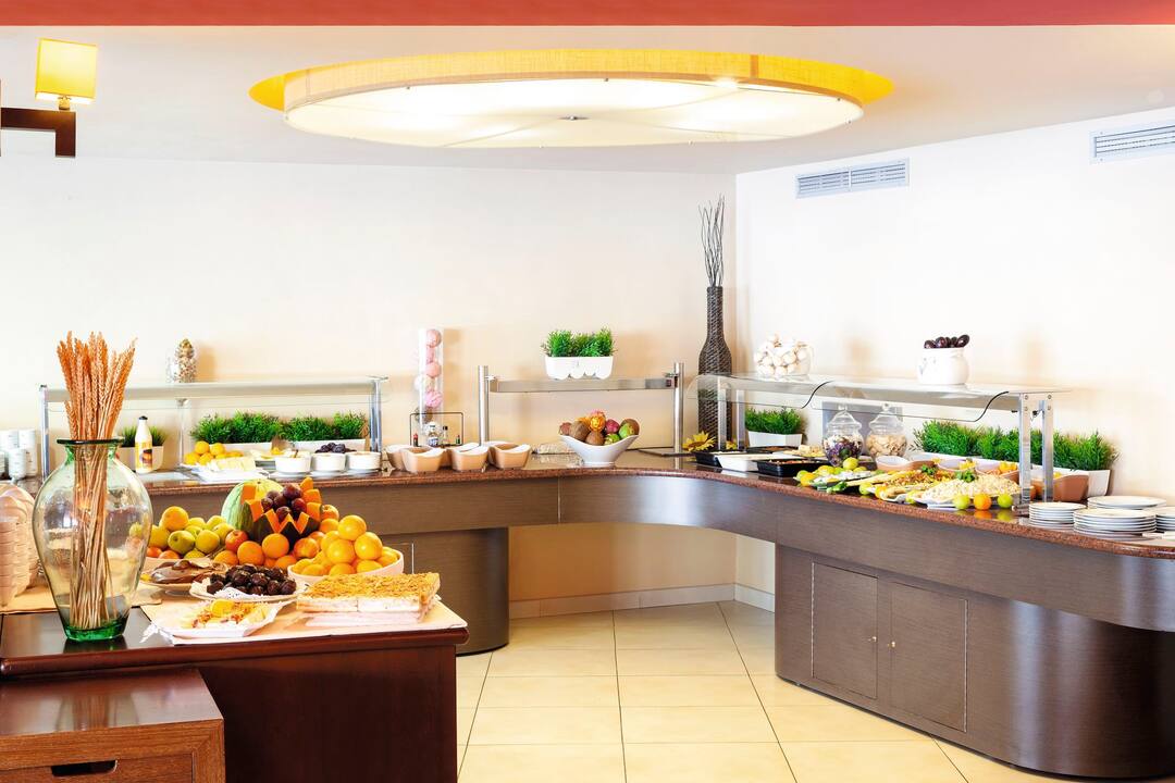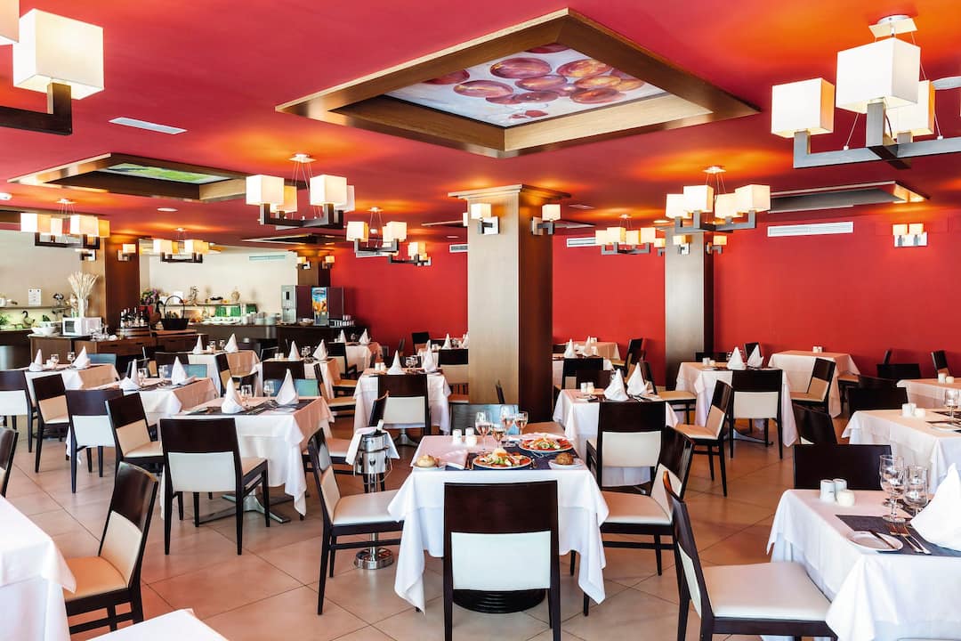 In the restaurant, scarlet walls are offset by monochrome furnishings and modern light fittings. The food takes the form of impressive buffets, so expect a varied mix of Spanish classics and international favourites.