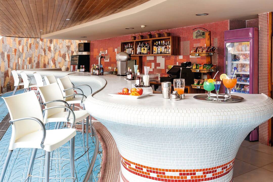 There’s a kidney-shaped pool in the hotel grounds. It features a built-in whirlpool and is surrounded by loungers and a curtain of tall palm trees, and there’s even a poolside bar for when you fancy a drink.