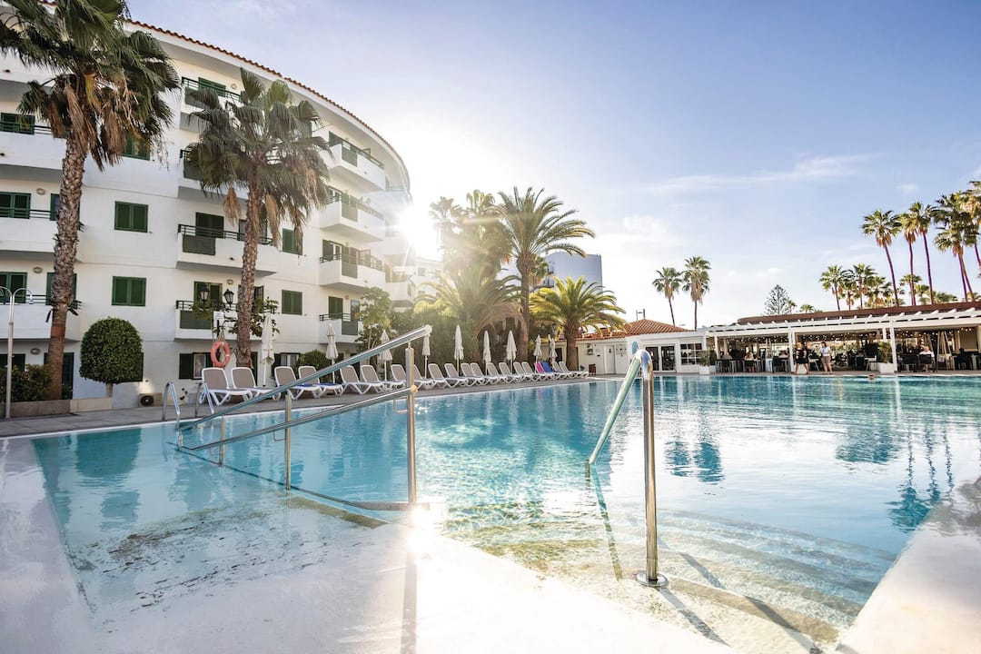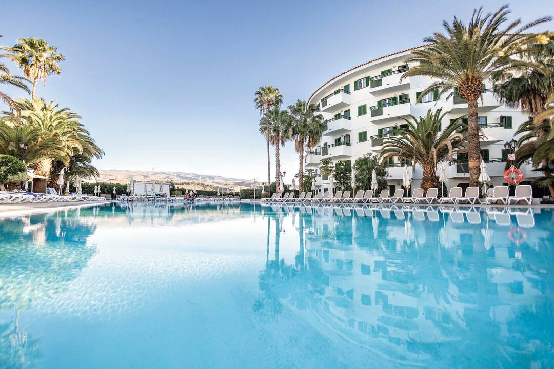 Servatur Playa Bonita Hotel is set in a peaceful location, surrounded by hills, palm trees and blue sky. The hotel is a five-minute walk away from the beach, shops, bars and restaurants and, thanks to a recent refurbishment, the decor throughout this lovely hotel is modern and fresh. The chill-out bar is new, with funky furniture and atmospheric lighting. You can enjoy drinks beside the pool, as well as in the contemporary buffet restaurant. The sun terrace, dotted with loungers, parasols and palm trees, wraps around the large central pool. Children will love the separate splash pool. Little ones can also have fun in the playground and there’s a games room for older kids. Evening entertainment consists of mini-discos, live music and professional shows.