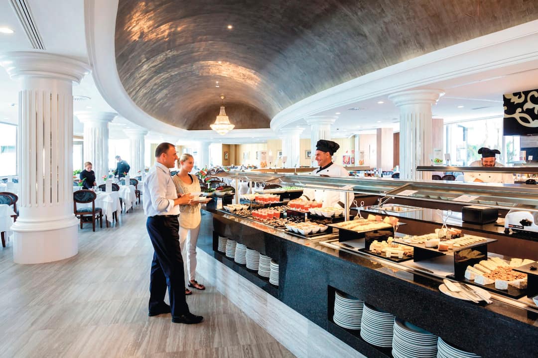 Most of the rooms at striking Riu Palace Tenerife look out across the ocean, and it’s just a gentle stroll through the impressive resort to take a dip in either of the two large swimming pools or luxuriate in the wellness centre and spa. There are five restaurants and bars, including a buffet restaurant which serves up a variety of exciting international cuisine. For an a la carte experience, try the Spanish and fusion restaurants on site. Nightlife comes in the form of live music and shows which are on the bill several times a week.