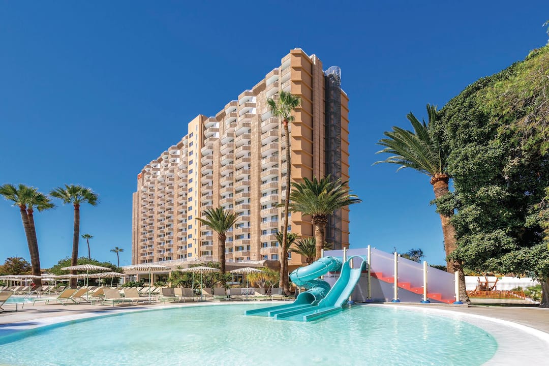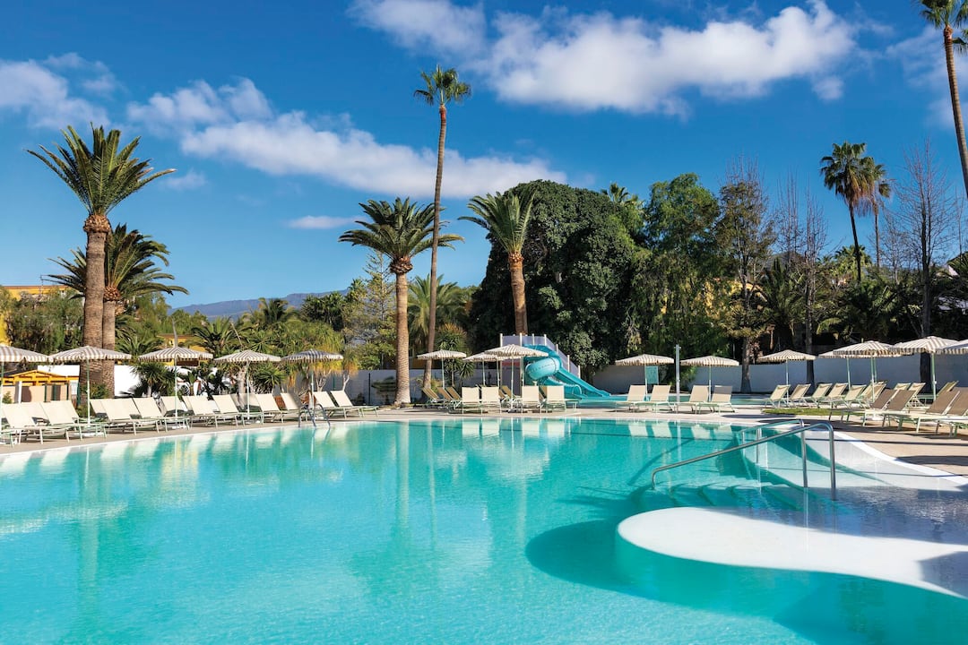 Guests love the pool scene at the Sol Arona Tenerife. There’s a spacious oval-shaped number in the garden, with a frame of sunloungers and parasols. It also hosts activities like water polo during the day. Nearby, there’s a snack bar serving light bites and a children’s splash pool.