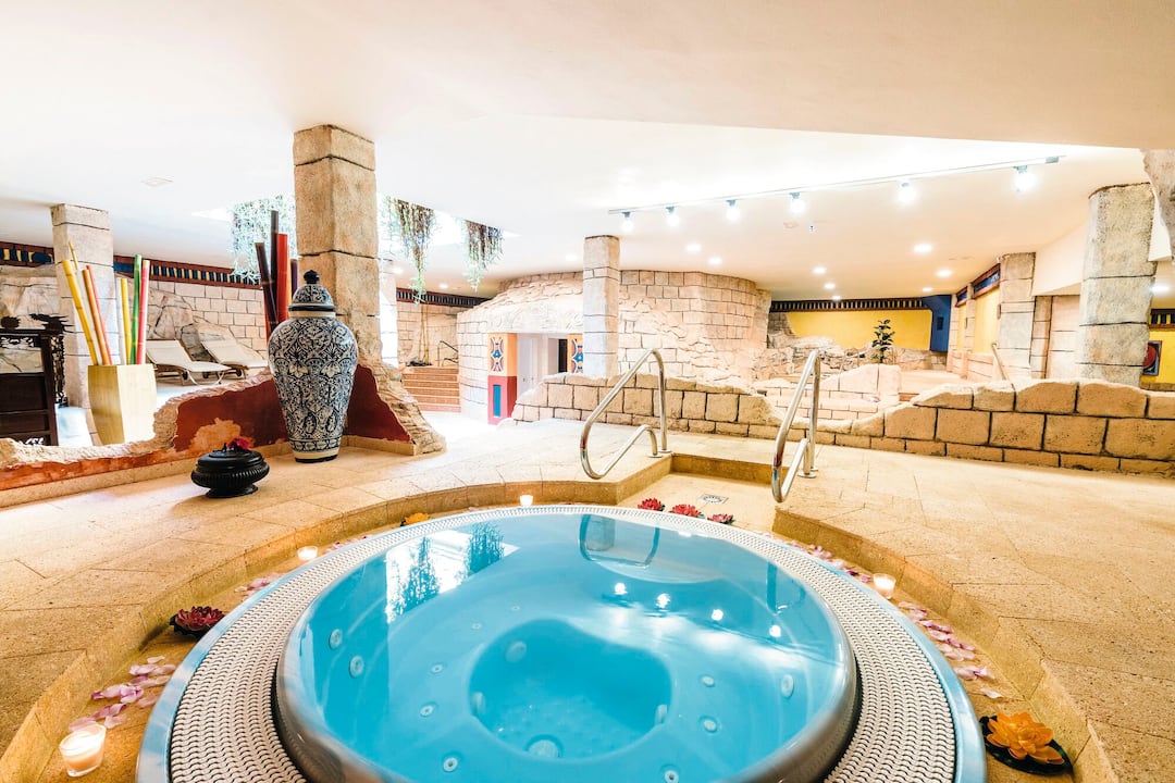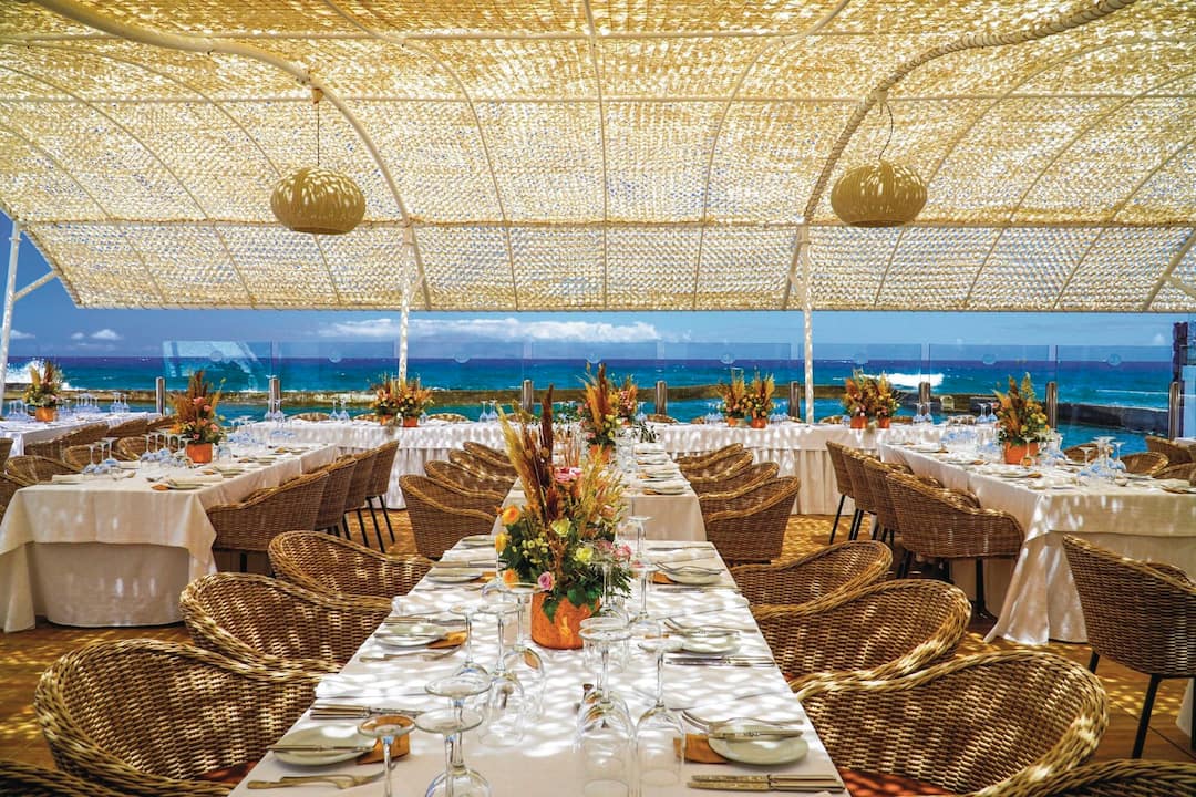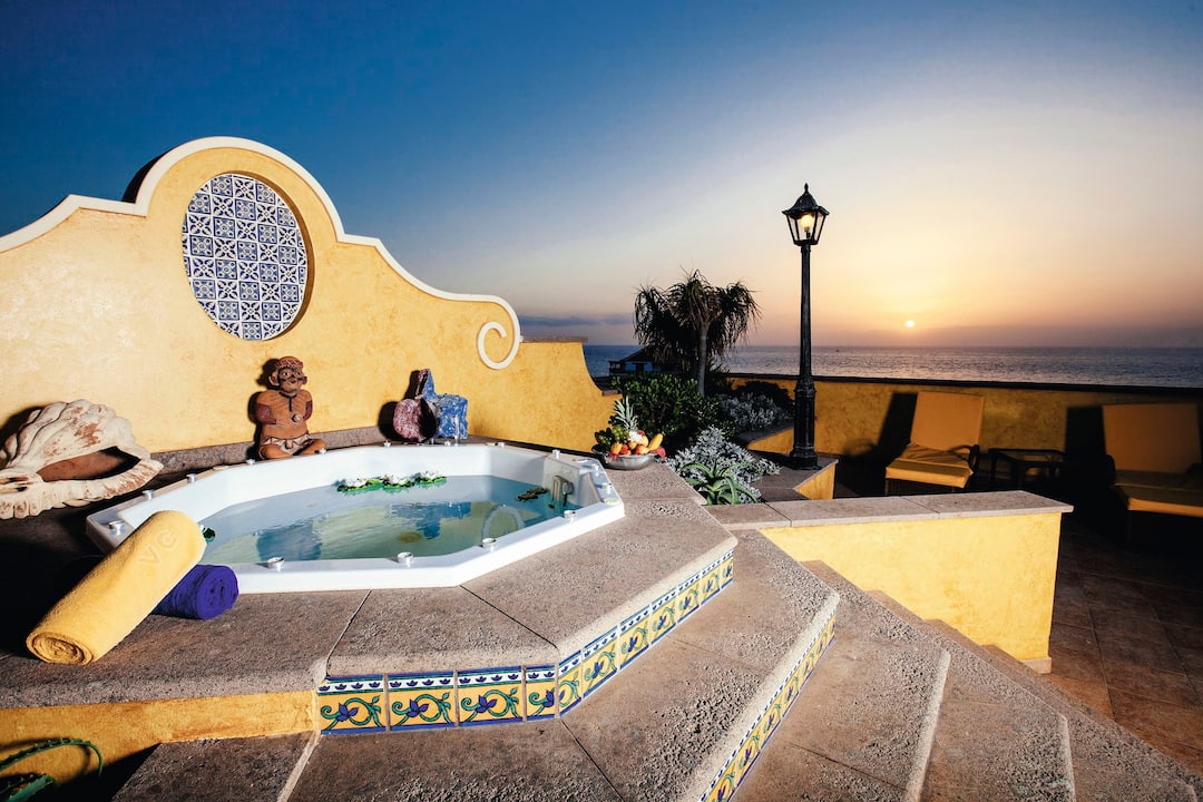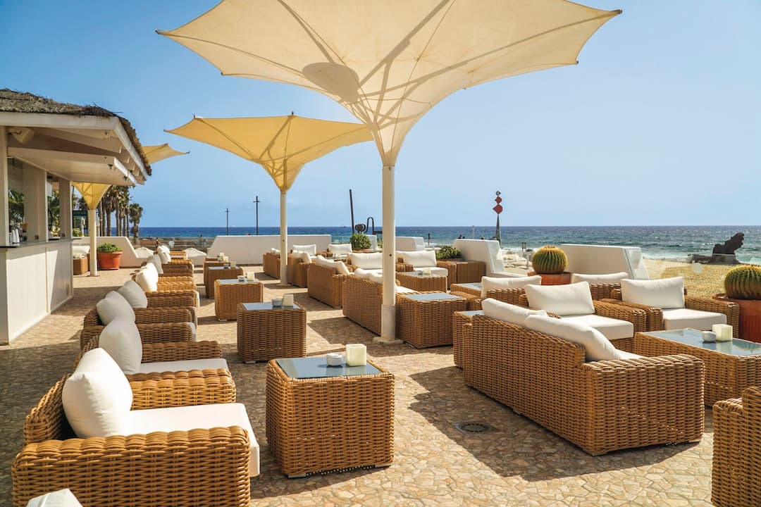 The attractive Villa Cortes Hotel is set right on the beach. It’s a 10-minute walk from the centre of Playa De Las Americas. The on-site restaurant serves a selection of gourmet dishes, including vegetarian options, and the poolside snack bar is on hand for lighter bites. The expansive pool area, home to a terrace and waterfall feature, offers an idyllic spot to sunbathe. If you’re in need of a pampering treat, head to the on-site spa and wellness centre. Active types can work up a sweat at the gym or take part in tennis, aerobics and snorkelling.