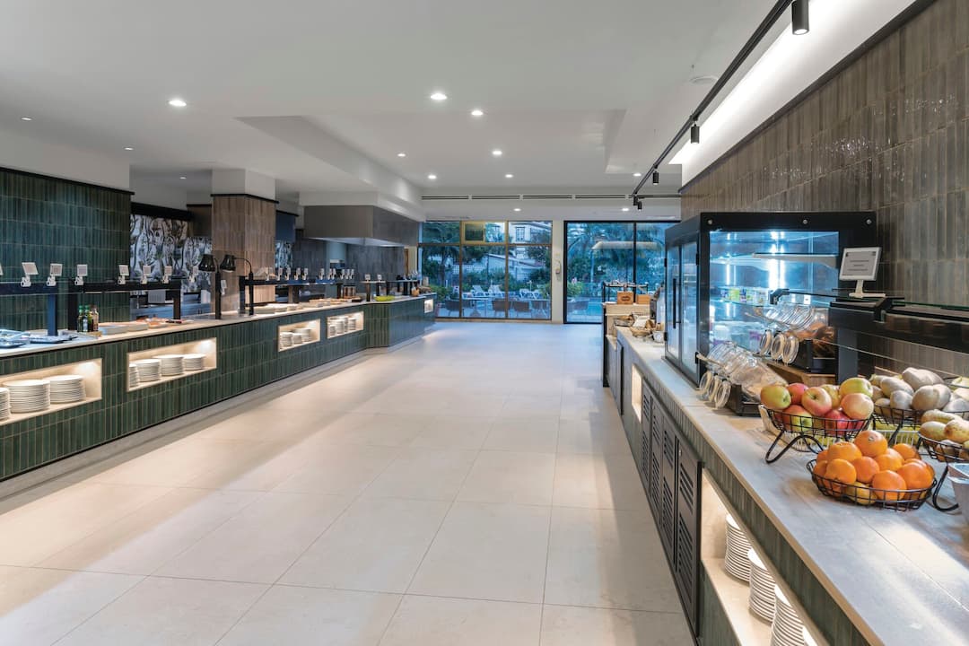 The restaurant makes the most of the views out to sea and over the city. It’s a buffet set-up that offers a range of meat, fish, pasta and salad dishes in the evening. For breakfast, there are continental and cooked options.