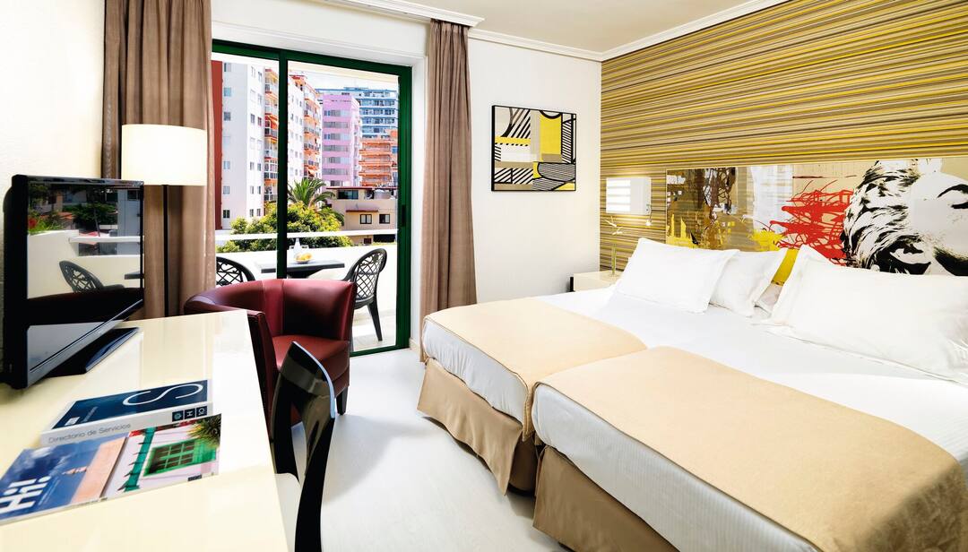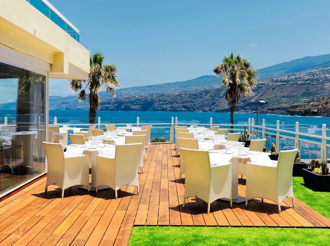 The H10 Tenerife Playa Hotel is in an ideal location on Puerto de La Cruz’s oceanfront promenade, just minutes from the beach. You can expect airy rooms with modern decor and bright prints on the walls. Outside, you’ll find tropical gardens, sun terraces and two pools. There’s also a whirlpool bath and an outdoor hot tub surrounded by Balinese daybeds in the pool area. Another of the H10 Tenerife Playa Hotel’s fantastic features is the rooftop area with a gym, terrace, sauna and Turkish bath. After a day of relaxation, enjoy an international buffet spread at El Drago restaurant, or have a drink at one of the bars.
