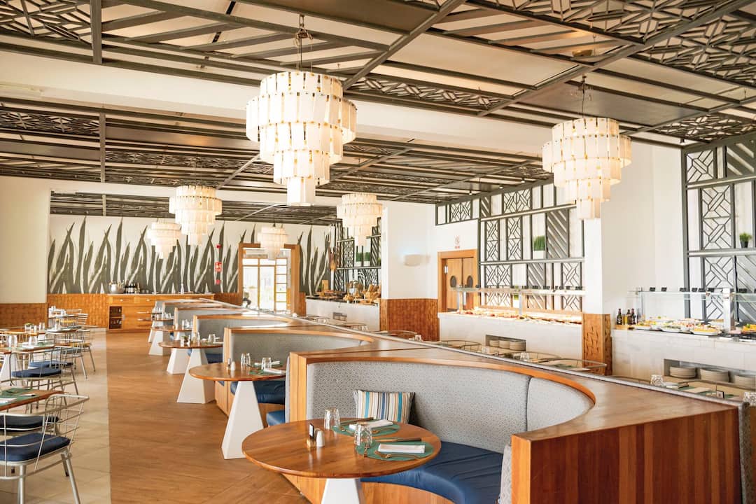 The pool here is a picture of calm. Only seconds from the beach, it features whirlpool baths and semi-submerged sun loungers. If you’re looking for cocktails, there’s no need to leave the water thanks to the swim-up bar.