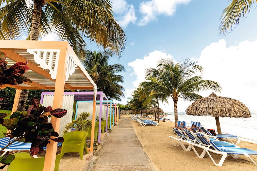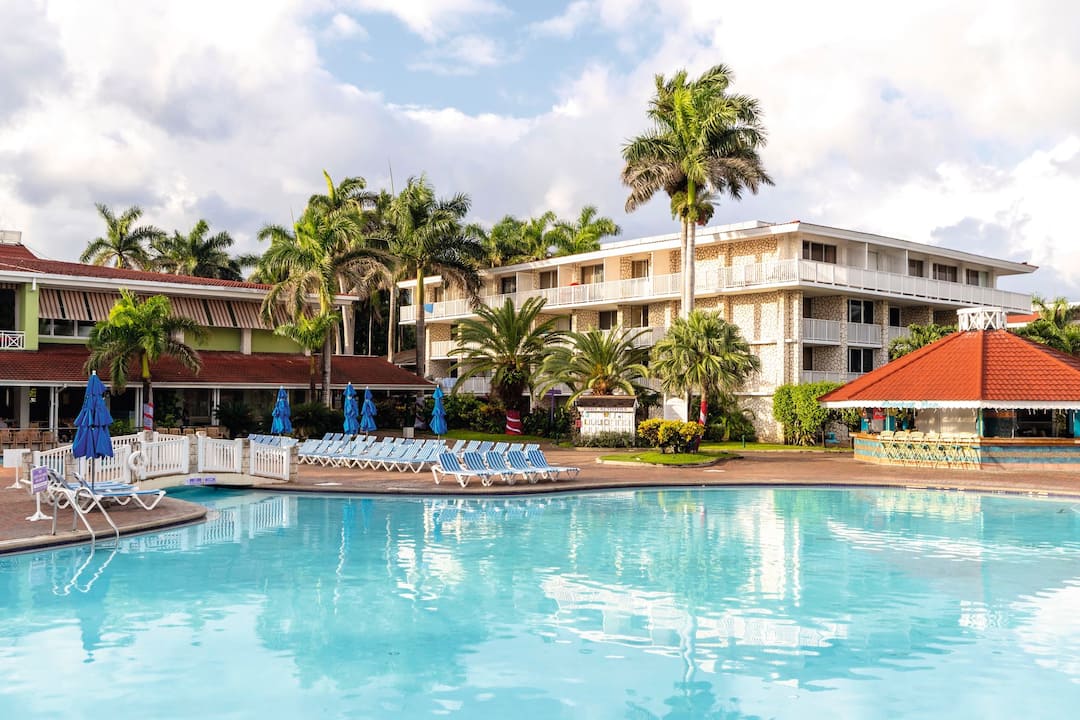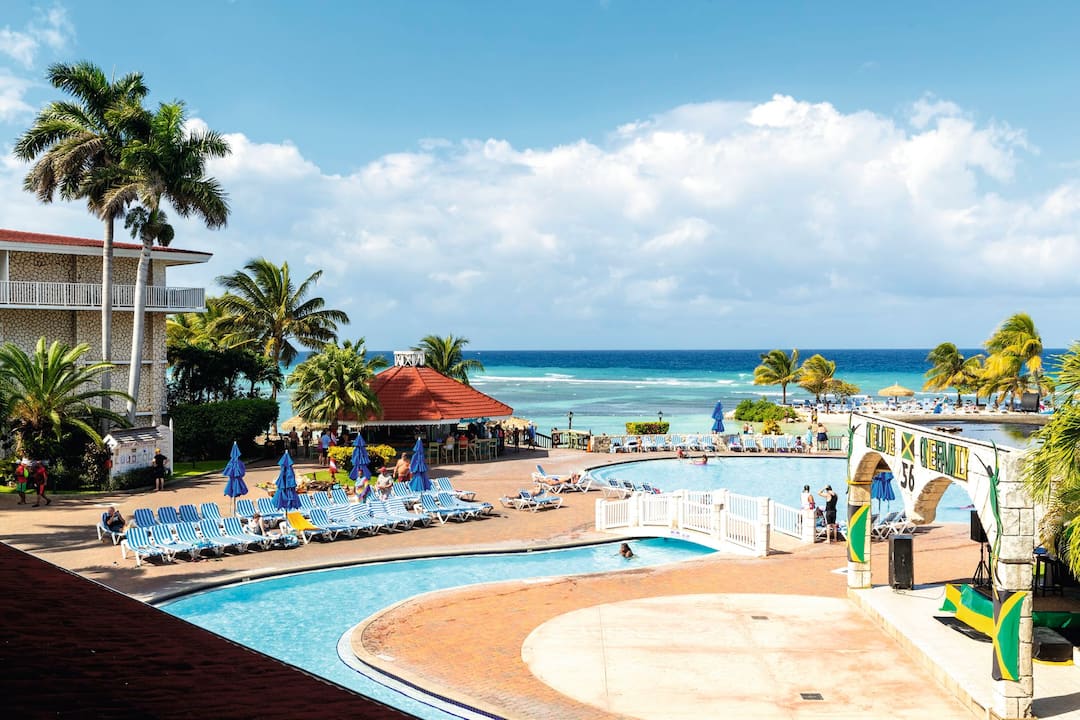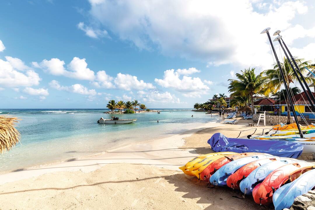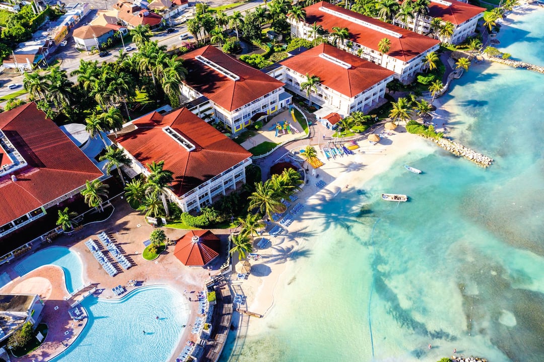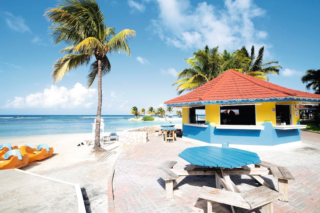 The large All-Inclusive Holiday Inn Resort sits on half a white-sand beach with its own private island just a few steps from the shore. Spacious, comfortable rooms nestle between a spa, kids club and lush gardens. Relax and rejuvenate in the courtyard and lagoon family pool overlooking the beach. And there’s a second one for adults, with a swim-up pool bar and whirlpool. Six restaurants provide every selection of cuisine, from Japanese to Jamaican. And there’s nonstop fun and games, with thrilling watersports available, along with volleyball, basketball and tennis on the hotel courts.