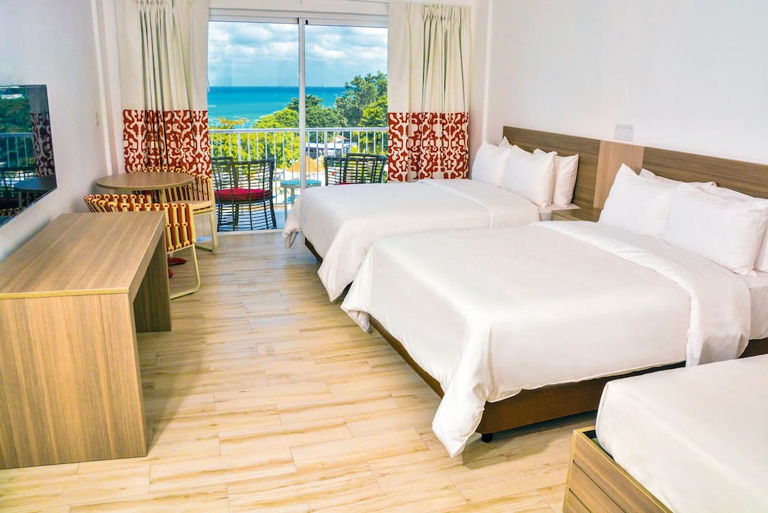 The Royal Decameron Cornwall Beach hotel was built in a half-moon design, embracing its own private beach and the magnificent cerulean waters of the Caribbean sea. This means that all of the 146 rooms come with panoramic ocean views and feature colourful Caribbean accents. Take an invigorating dip in the pool, indulge in a massage in a beach cabin with sea views, or shop in the hotel’s boutique. The hotel’s all-inclusive offerings extend to unlimited buffet-style breakfasts and lunches, and you will never go hungry, with afternoon and midnight snacks available, too. Refreshing beverages can be enjoyed at the hotel’s many beach and poolside bars…or get your Caribbean groove on and dance the night away at the disco bar. You also have access to all the facilities and services of the Royal Decameron Montego Beach, an adjoining resort that forms part of the Decameron group.