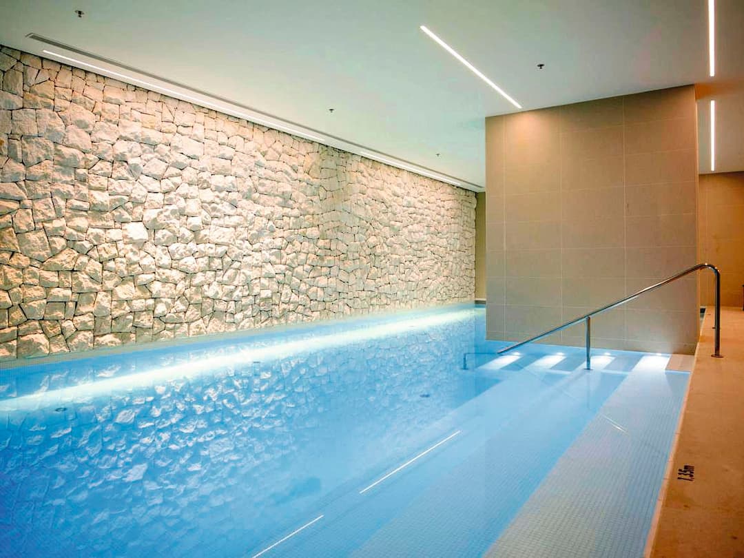 The outdoor pool is undoubtedly the star of the show. It sits on a roomy terrace and makes the most of the sea views, while another pool takes pride of place in the spa.