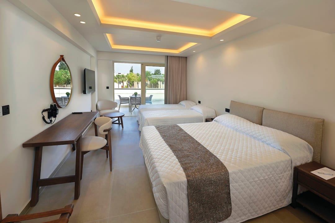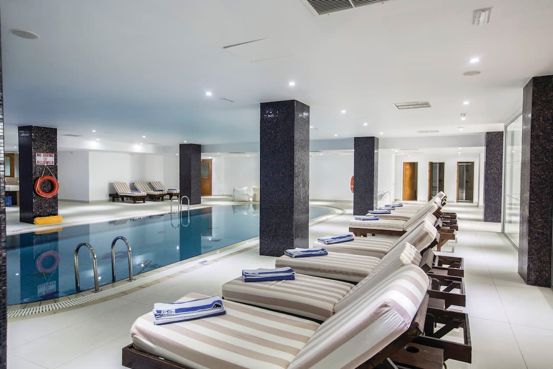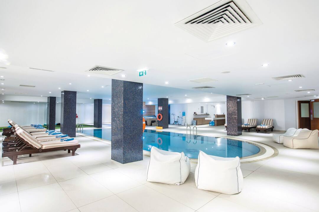 At the Anmaria Beach Hotel, it’s easy to swap between the lagoon-style pool and the Mediterranean Sea. If you’re spending the day poolside, then there’s a separate option for kids and a pool bar that serves drinks and snacks. Inside, there’s an indoor pool that’s heated between November and March.