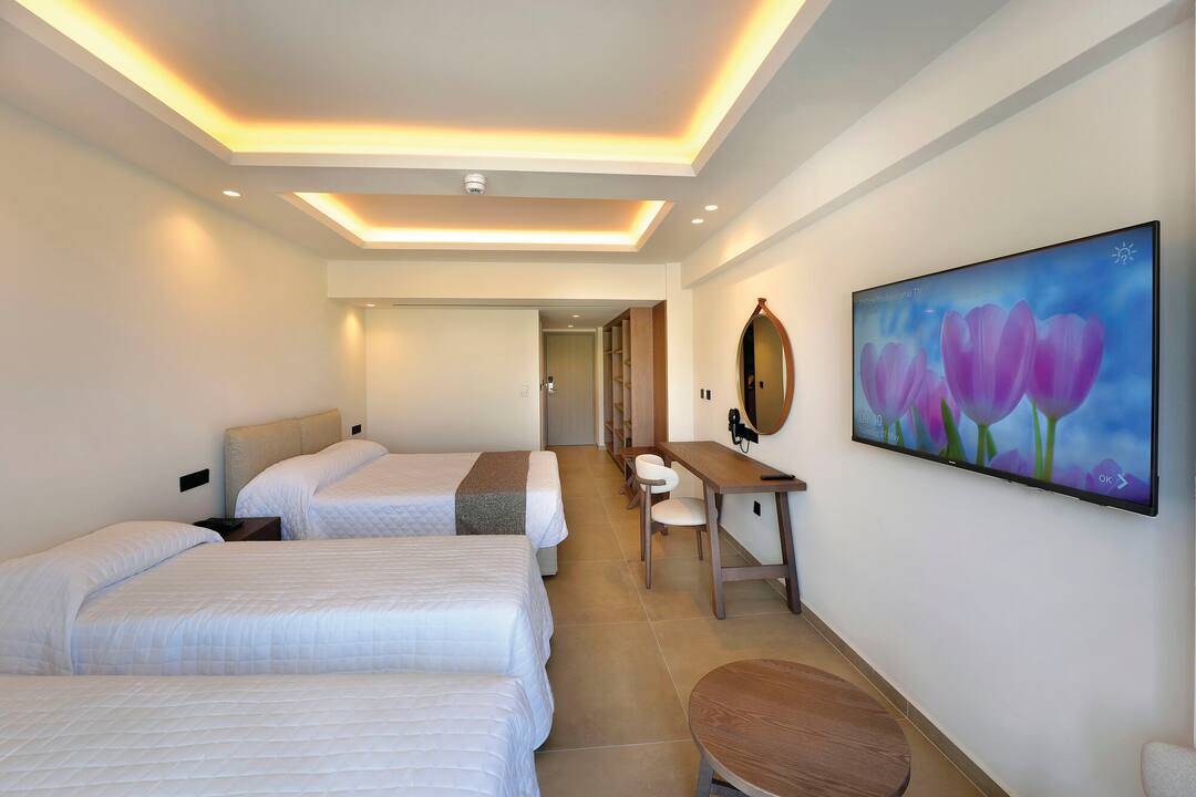 The Anmaria Beach Hotel puts the sea within easy reach. Simply follow the path by the side of the pool to reach a sunbathing platform with a ladder that drops straight into the sea. There isn’t a beach here, but a stroll to the nearest stretch of sand will only take you an extra couple of minutes. If you can’t find a suitable spot here, then along the eight kilometres of coastline, you’ll have 13 other beaches to choose from.