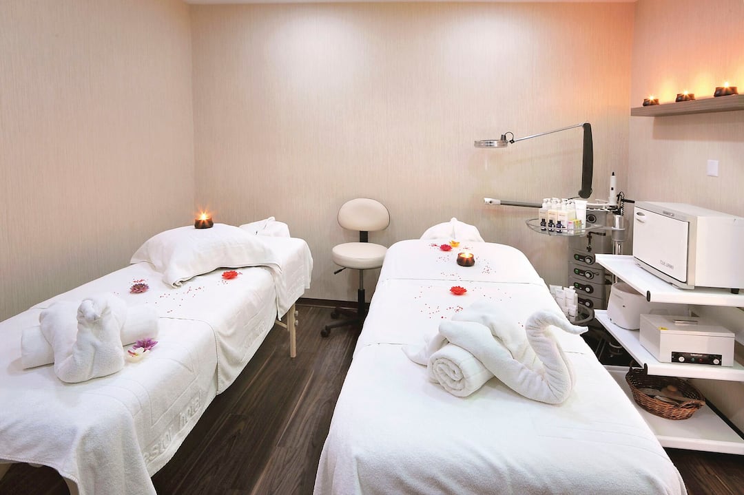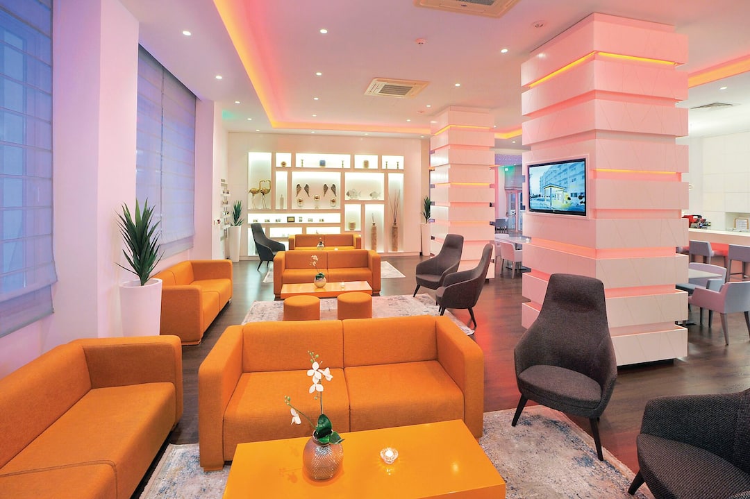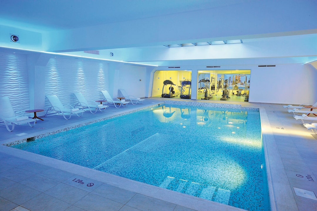 Everything about the hotel oozes style, with clean lines and contemporary furnishings. You’ll find futuristic lights in recesses and contemporary artwork on the walls. In the pool, there are hydro-massage jets.