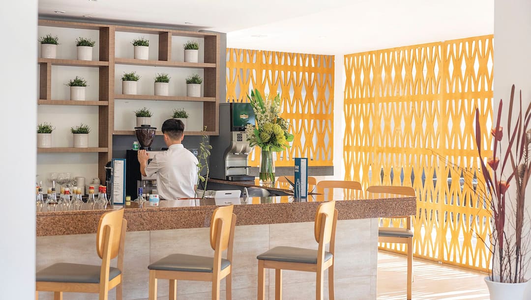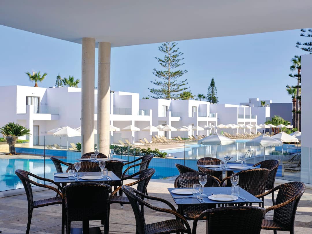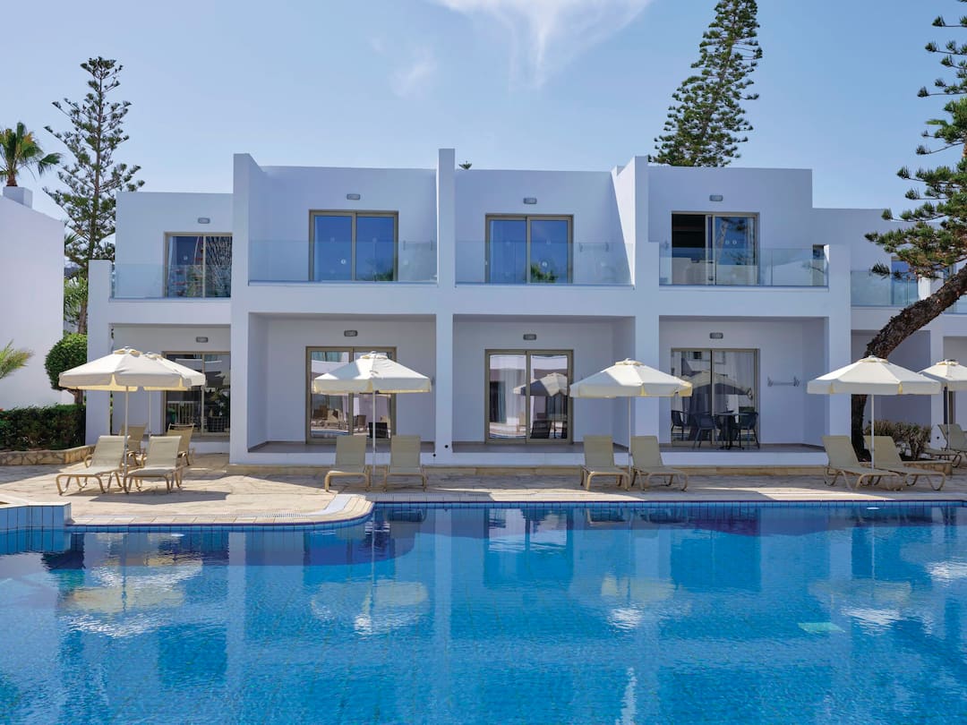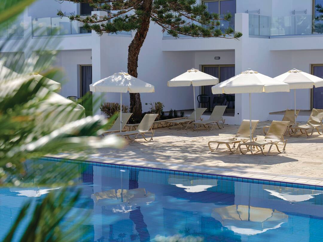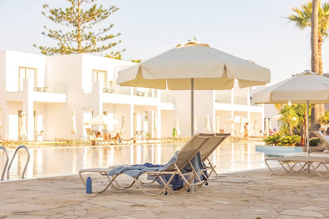 At the hotel itself, the rectangular pool snakes along the outdoor terrace. There’s also a paddling pool for kids here, as well as plenty of sunloungers for soaking up the rays in comfort.