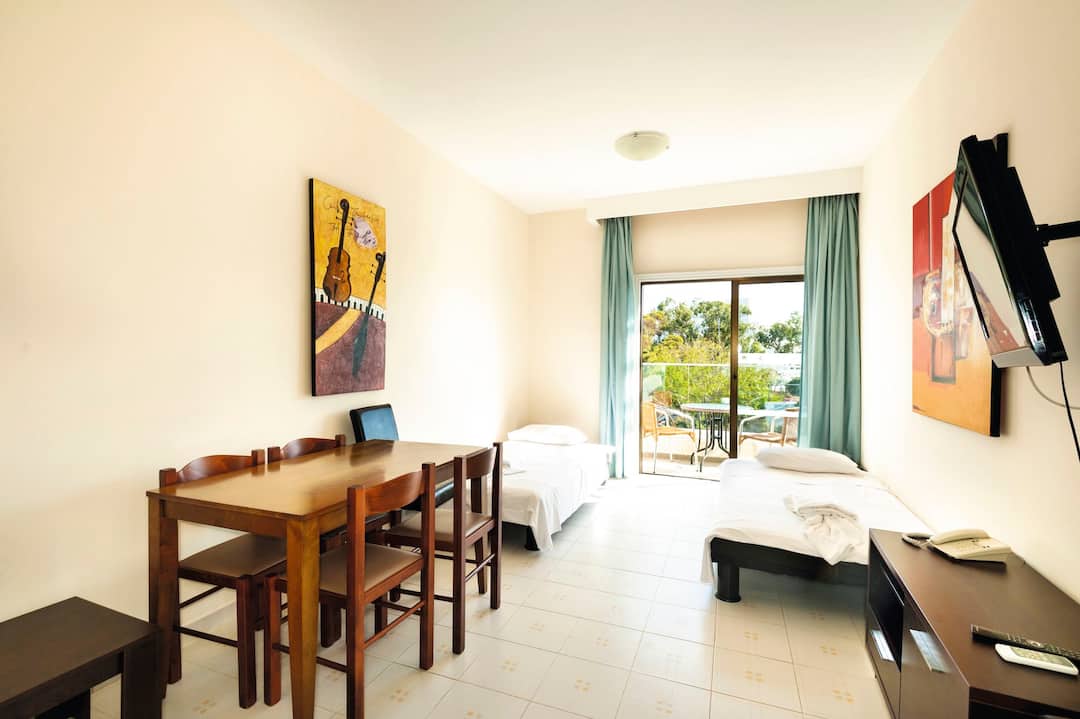 The Tofinis Apartments can be found next to the Tofinis Hotel. During your stay, you get full use of the amenities at both hotels, including all the sister hotel’s restaurants and its waterpark.
