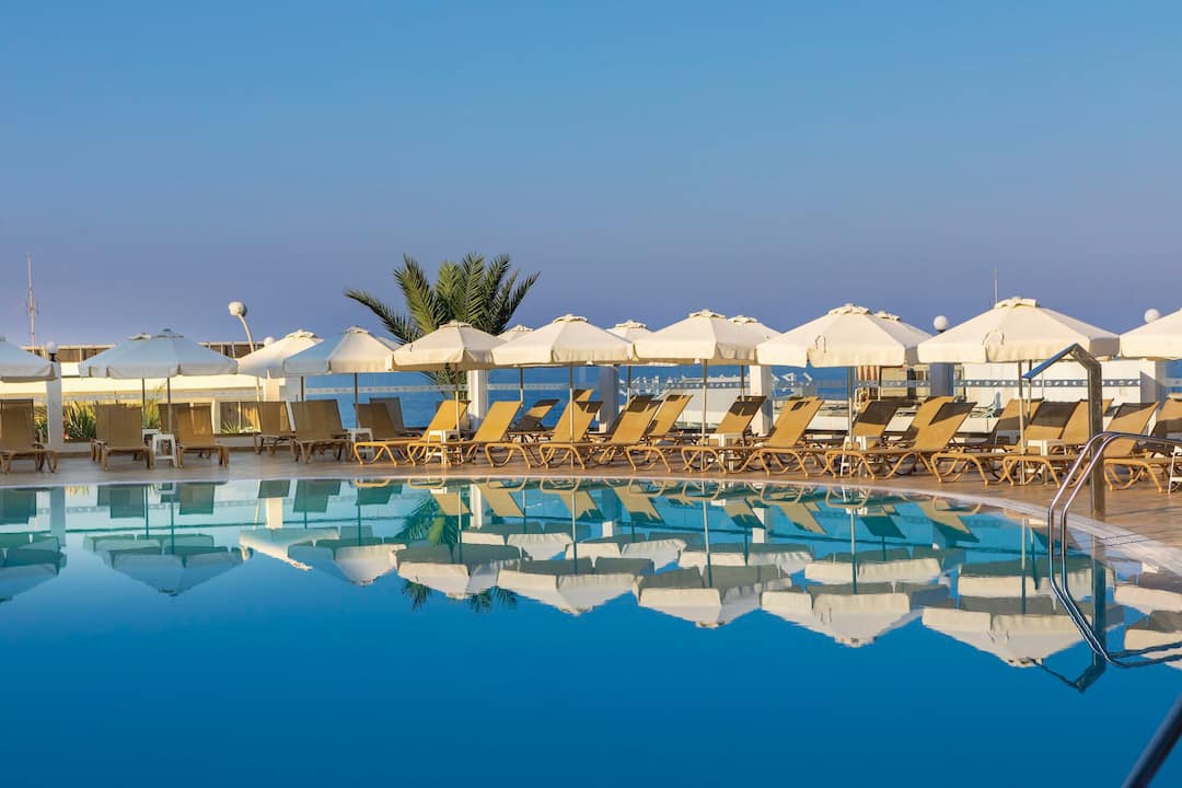 The waterpark is packed with chutes and slides. Elsewhere, there’s a rectangular pool that’s surrounded by loungers. Little ones also get their own pool and the whole family can enjoy the poolside bar that serves soft drinks and cocktails. On top of this, there’s also an indoor pool that’s big enough for lengths and has a built-in whirlpool.