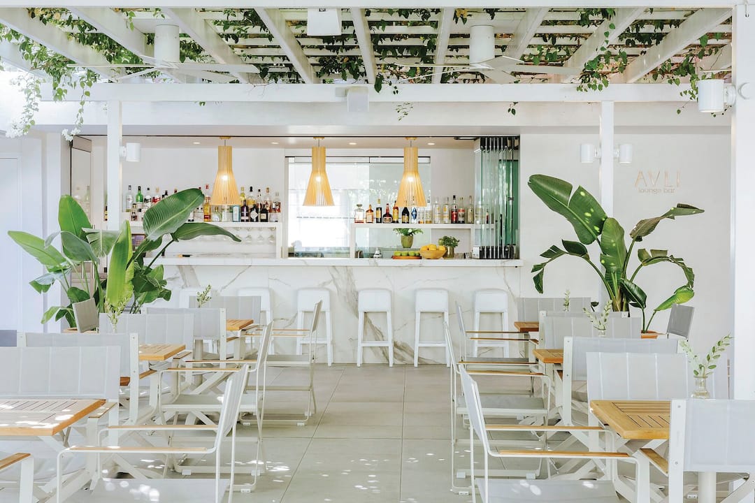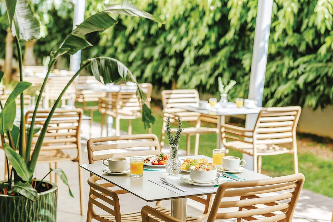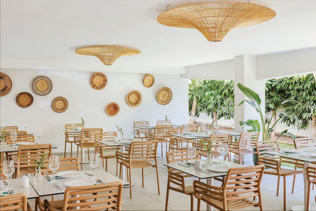 A charming, open-air dining room serves up buffet meals in a leafy setting. It’s also coupled with a bar that delivers cocktails straight to your sunlounger.