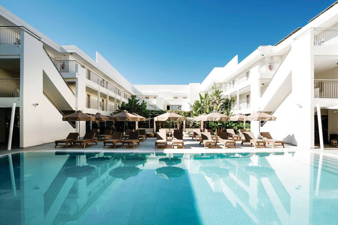 The Nissi Park Hotel is a relaxing base for a holiday in the sunshine. It’s designed in the style of old Cypriot monasteries, and some of the rooms look onto the central courtyard, with its pool and bar.
