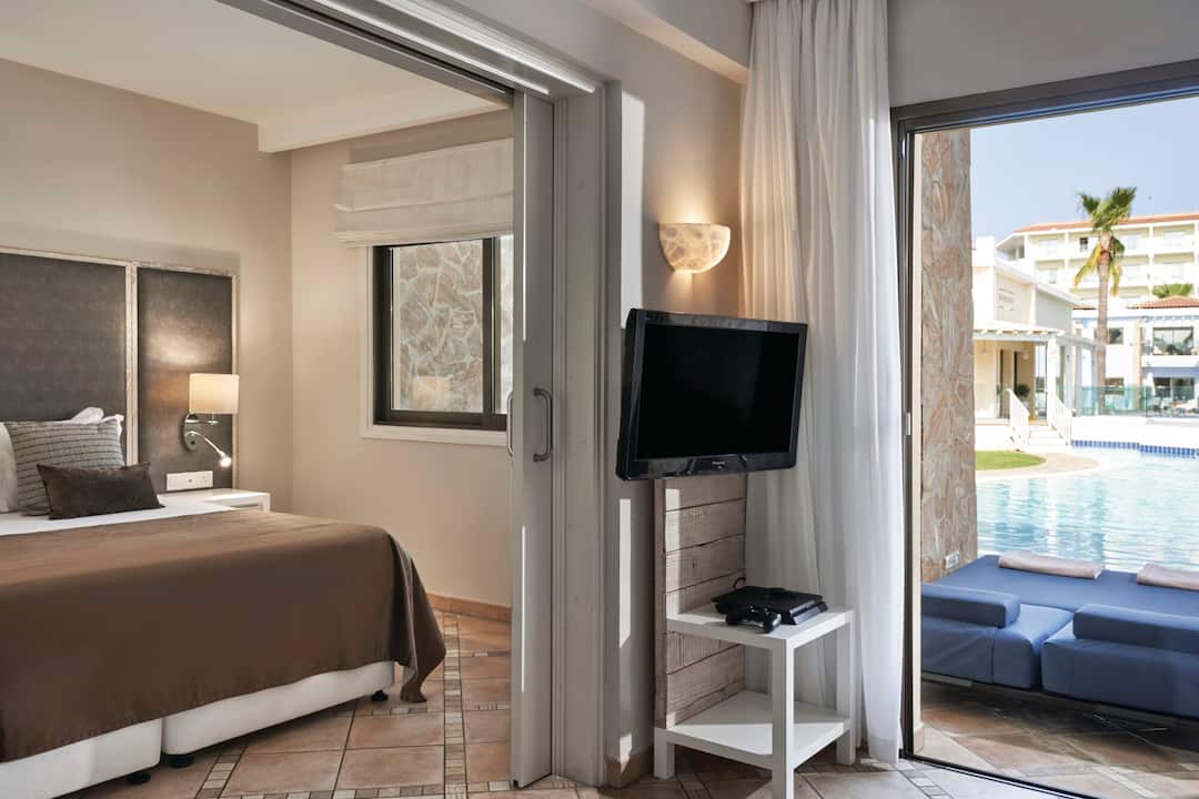 If you want to explore beyond the TUI BLUE Atlantica Aeneas Resort, take a leisurely stroll to the world-class beach, just minutes away. There, you’ll find a lively beach scene and plenty of watersports. Behind the beach are some attractive gardens and authentic tavernas serving up the freshest of seafood dishes and Greek favourites. Then, for a spot of shopping, head to the supermarkets and souvenir shops on Nissi Avenue. Maybe take a day trip to nearby WaterWorld waterpark, which is packed with slides, flumes and toddler-friendly splash pools. Nissi Beach in Cyprus is ideal for a relaxing break with lively Ayia Napa just a short drive away if you want a party fix.