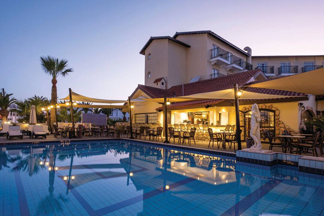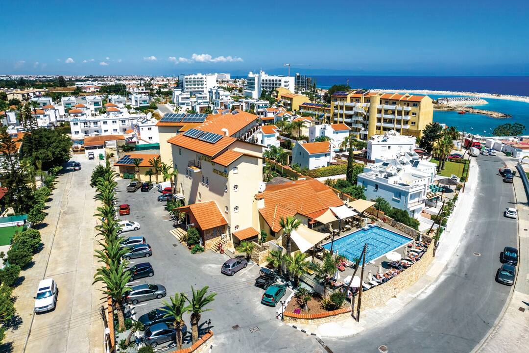 A pretty complex finished in traditional Mediterranean style, the Anais Bay Hotel and Apartments make a great first impression. Just a minute away from the beach, there is a relaxed and understated vibe here but it’s the food that really takes things to the next level. Offering a varied menu of home-cooked delicacies out in the courtyard, you’ll have to tear yourself away to sample some of the nearby restaurants. With spacious rooms, pretty gardens and a social pool atmosphere, this is a welcoming and comfortable base for any holiday to Cyprus.