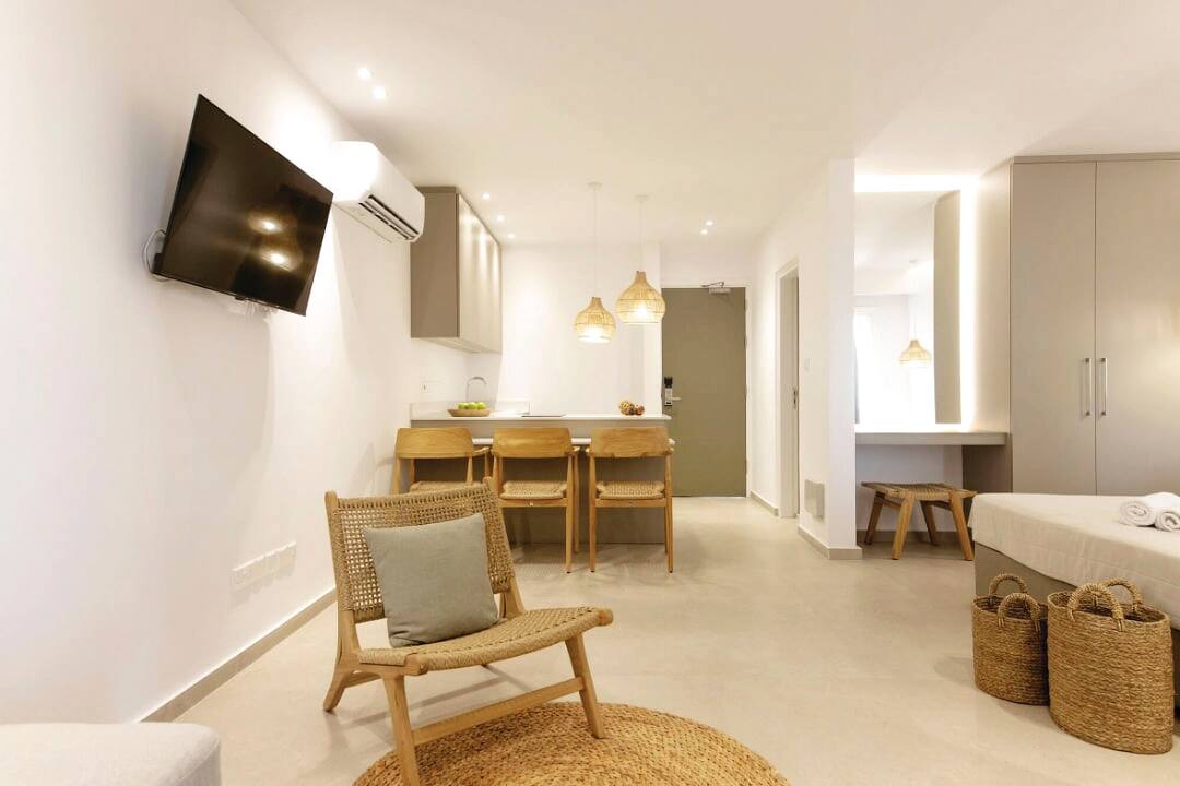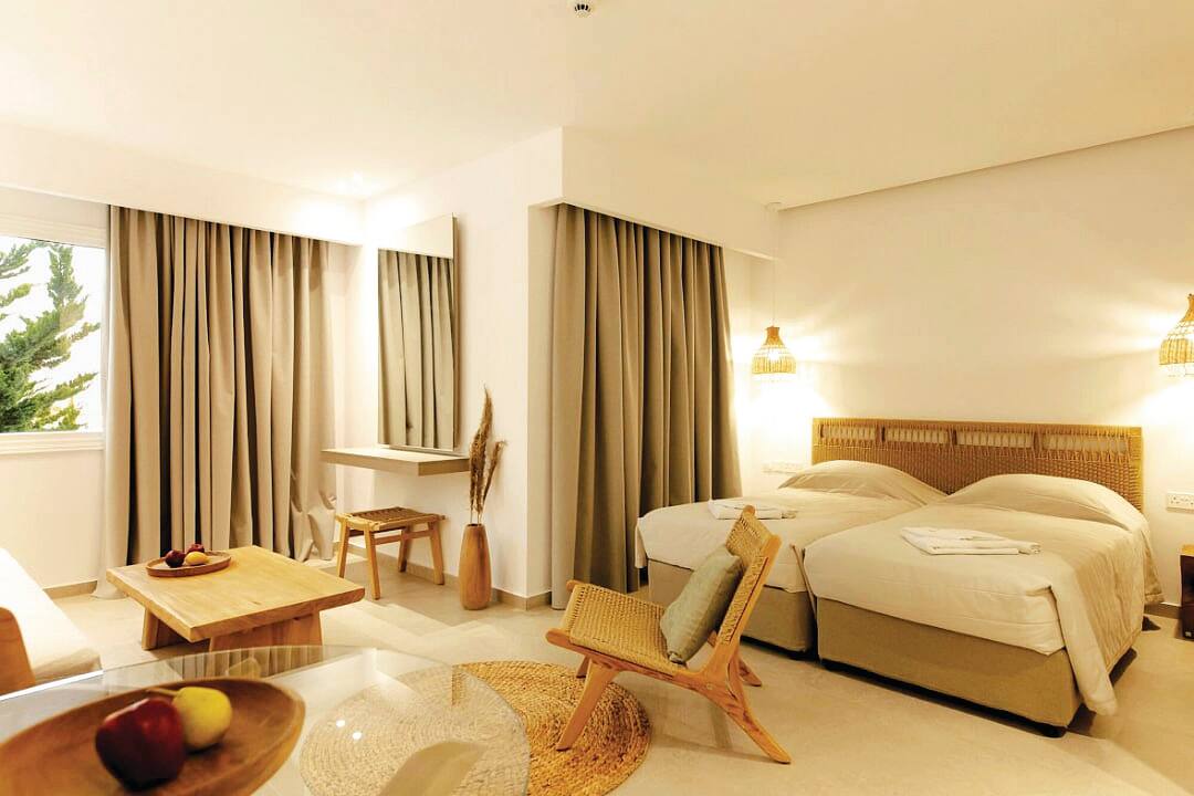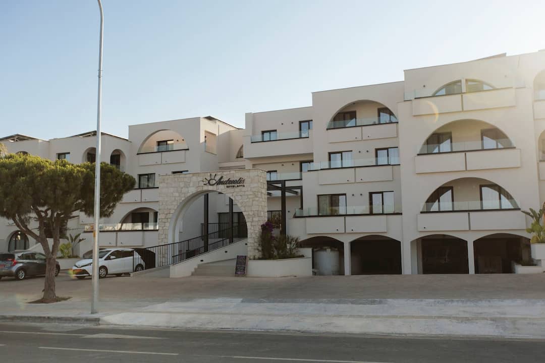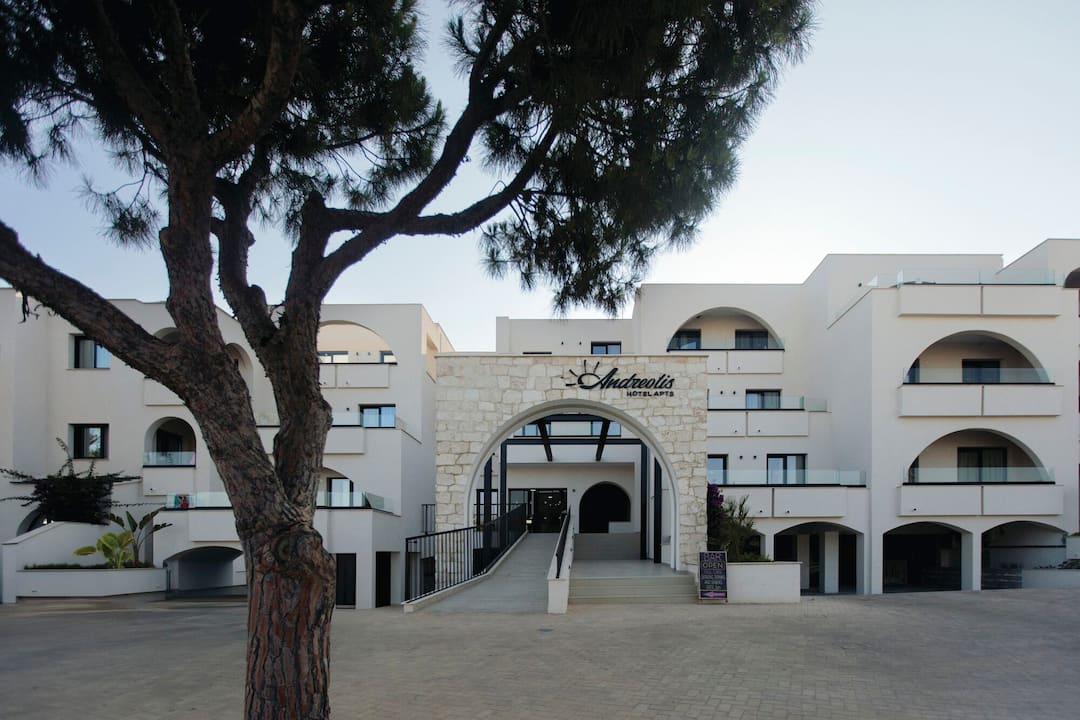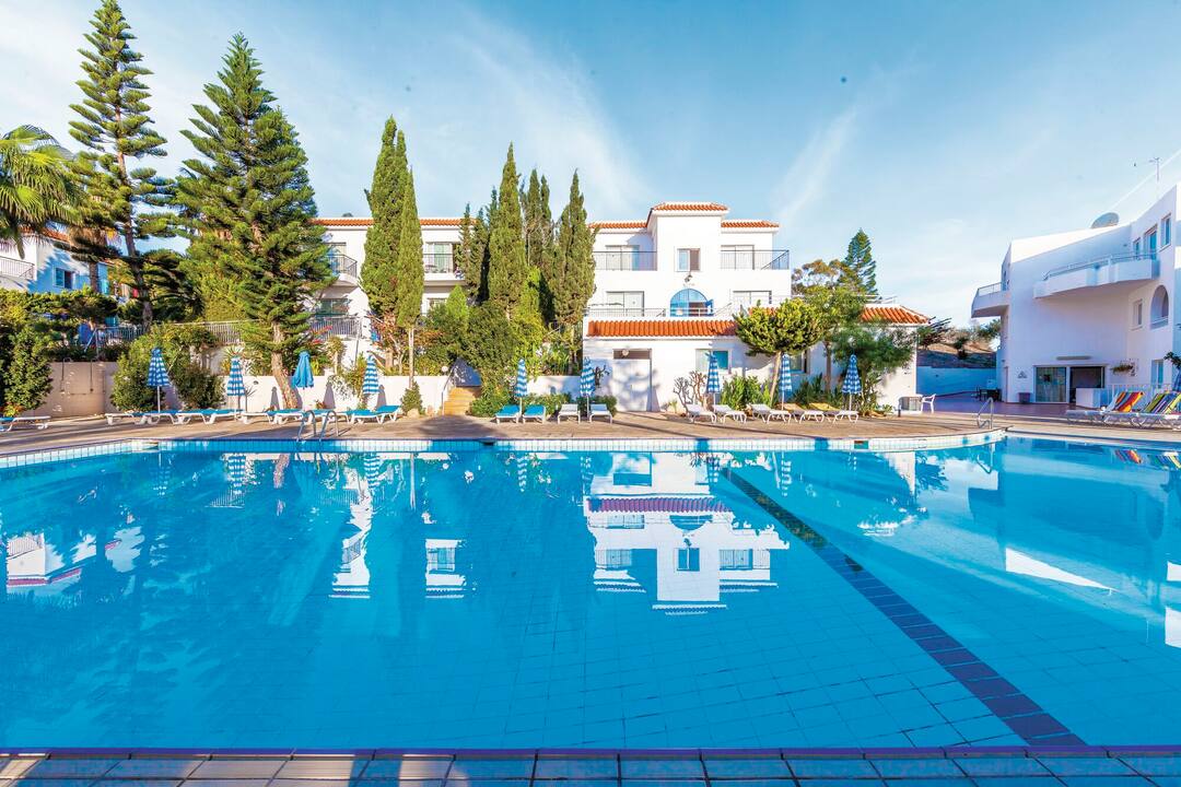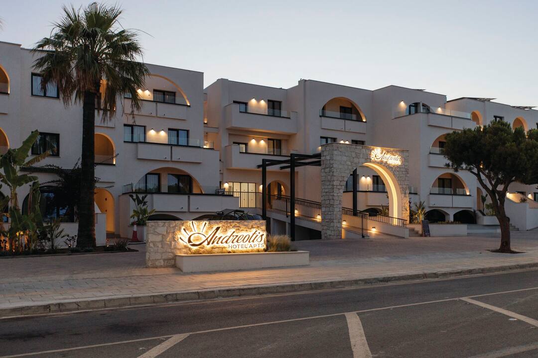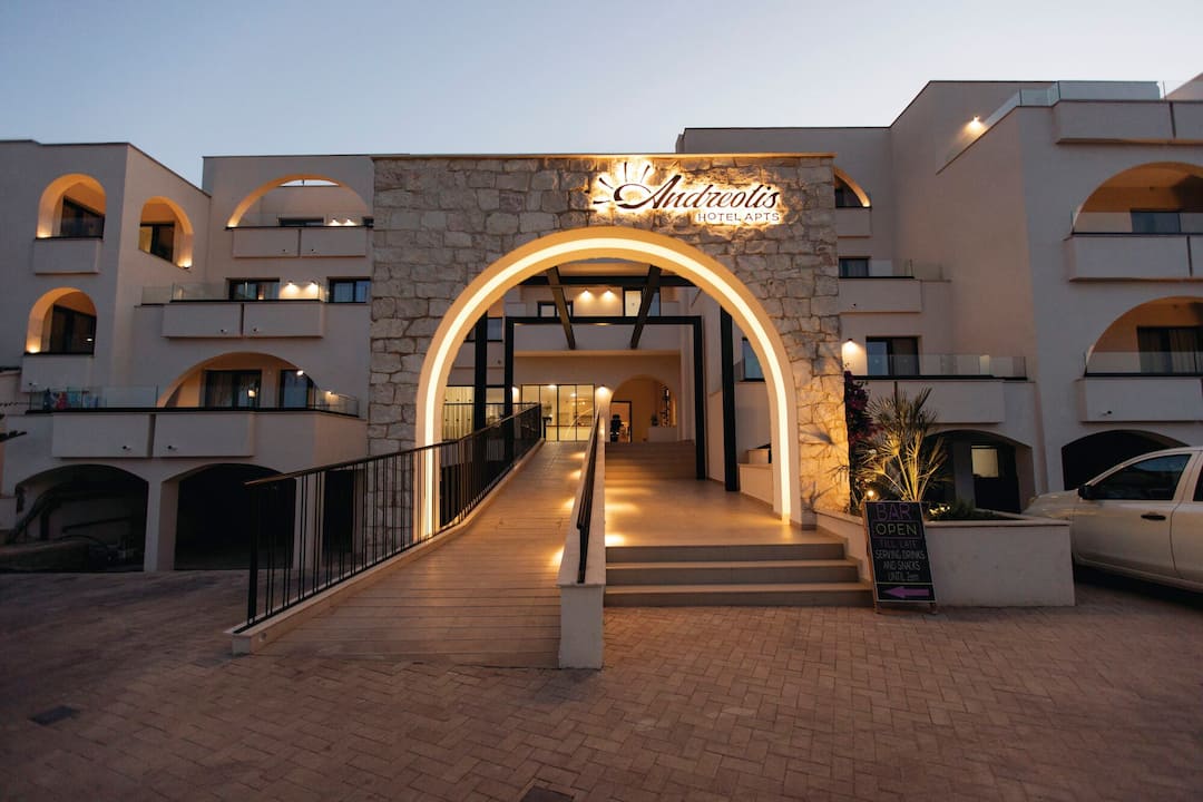 More than just a stylish hotel complex, the Andreotis Hotel and Apartments are a friendly and family-appropriate accommodation that combines good looks, comfortable bedrooms and handy amenities in equal measure, and it’s clearly a winning formula. A large pool is surrounded by loungers and parasols, as well as a kids splash zone. There’s also an al fresco restaurant and an excellent snack bar. With a pool table and video games available, everyone will be amused during days spent within the grounds but the beach is only 500m away, so fun in the sun can be as varied as you like.