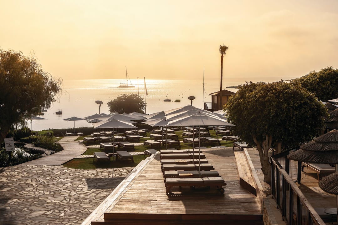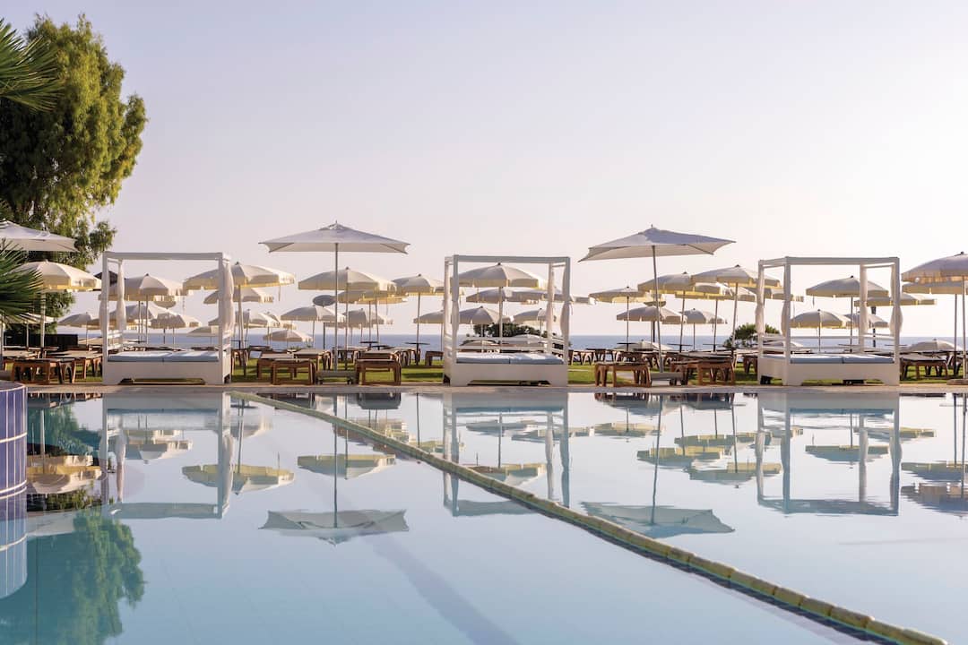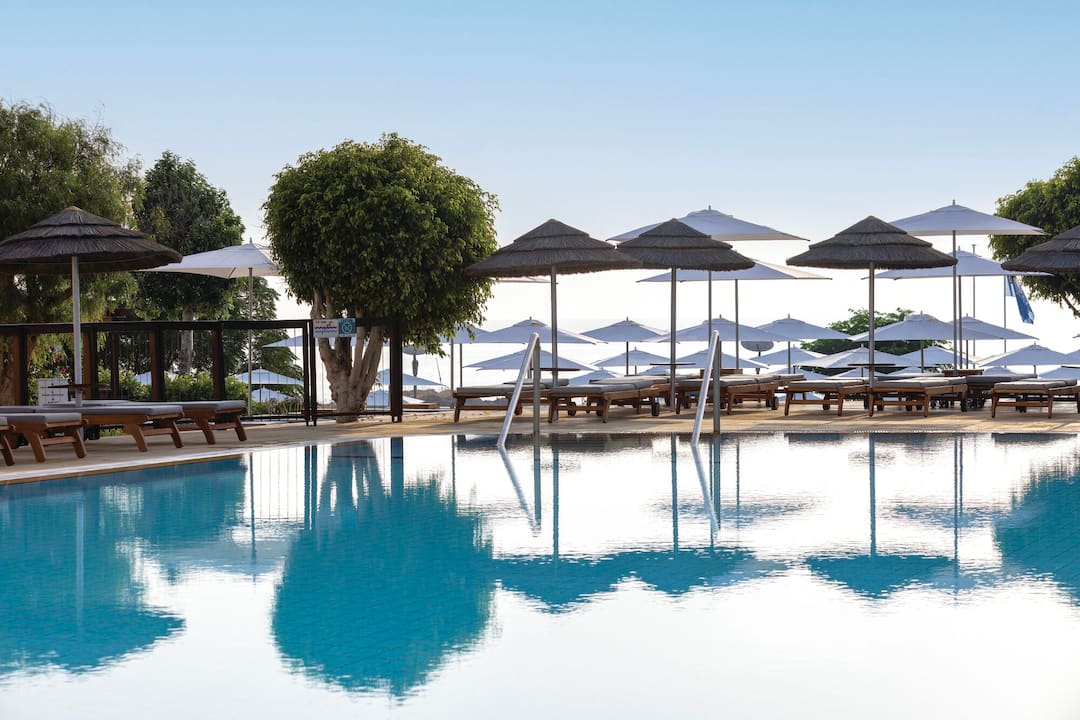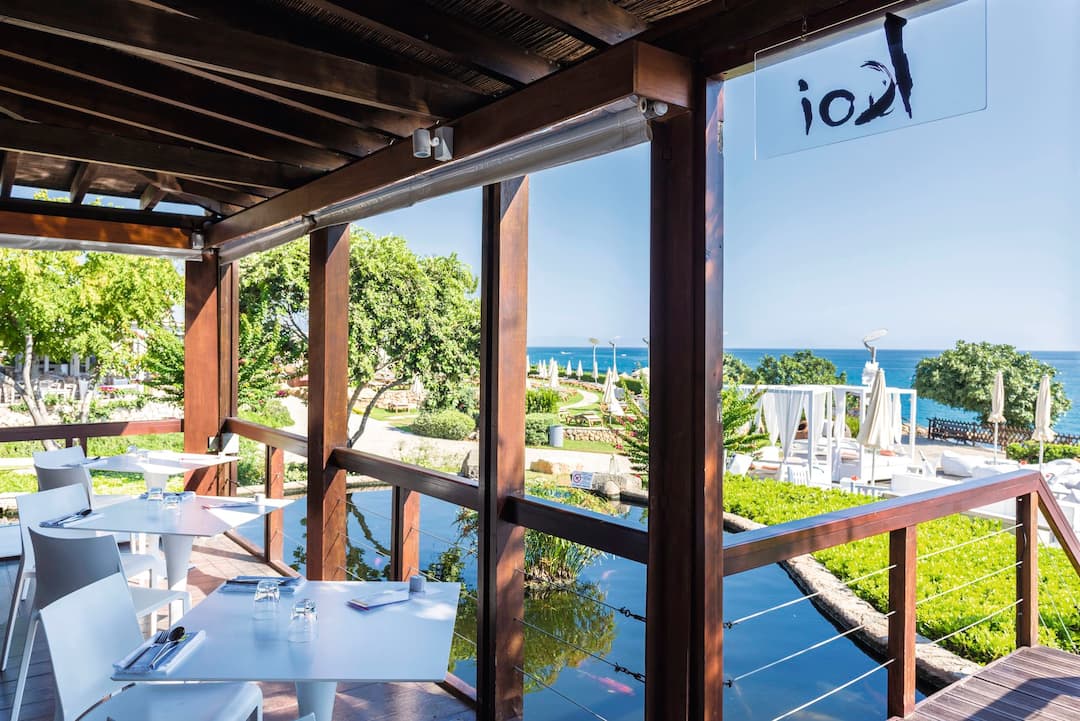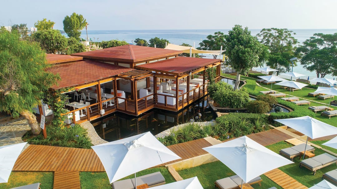 In the evening, the poolside venue transforms into a taverna that specialises in Greek classics. Elsewhere, the Koi restaurant serves fusion food.