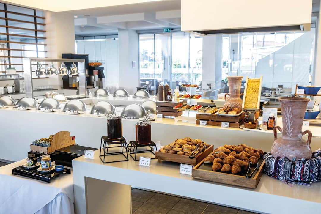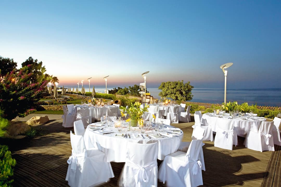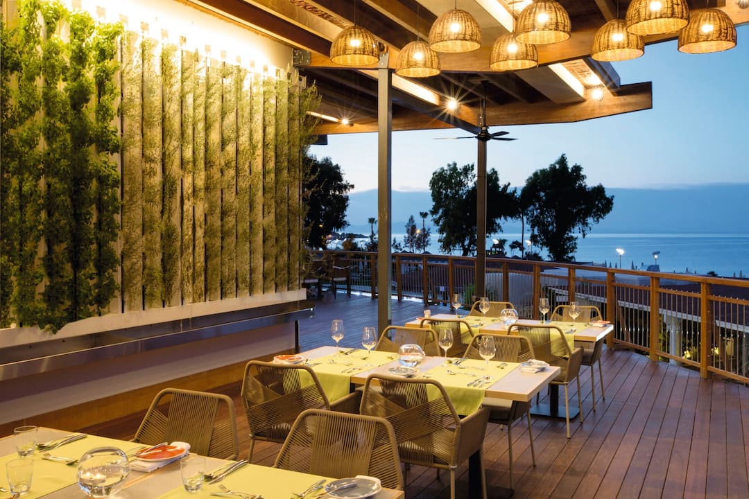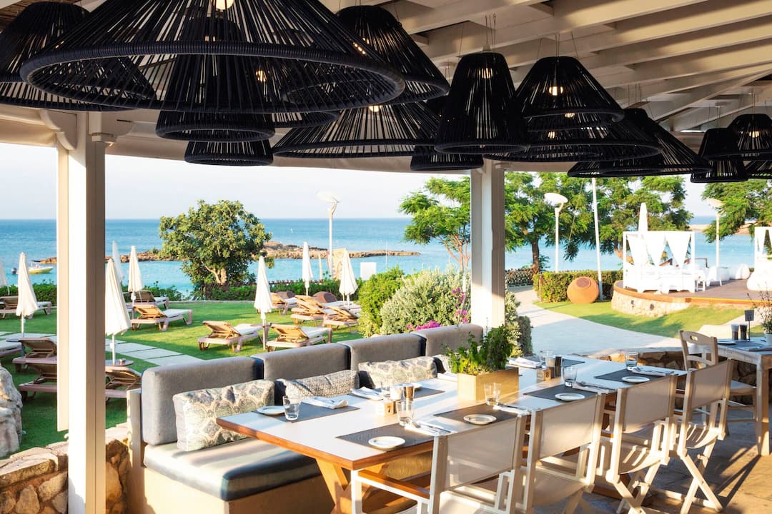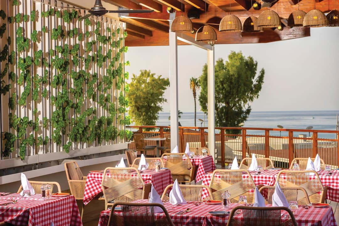 In the evening, the poolside venue transforms into a taverna that specialises in Greek classics. Elsewhere, the Koi restaurant serves fusion food.