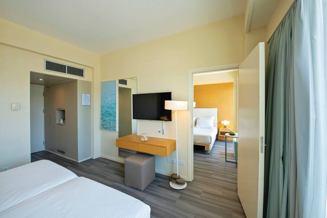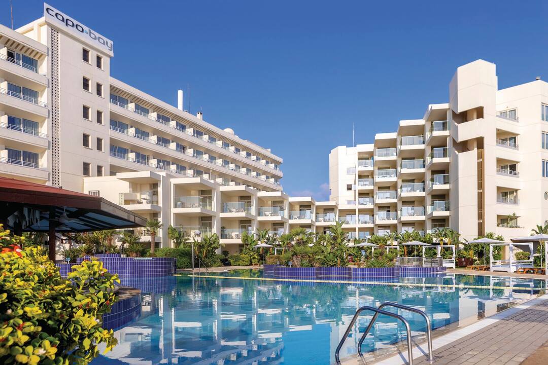 The Capo Bay Hotel comes with an A* postcode. The Blue Flag-winning Fig Tree Bay is just to one side, while Protaras’ centre is on the other.